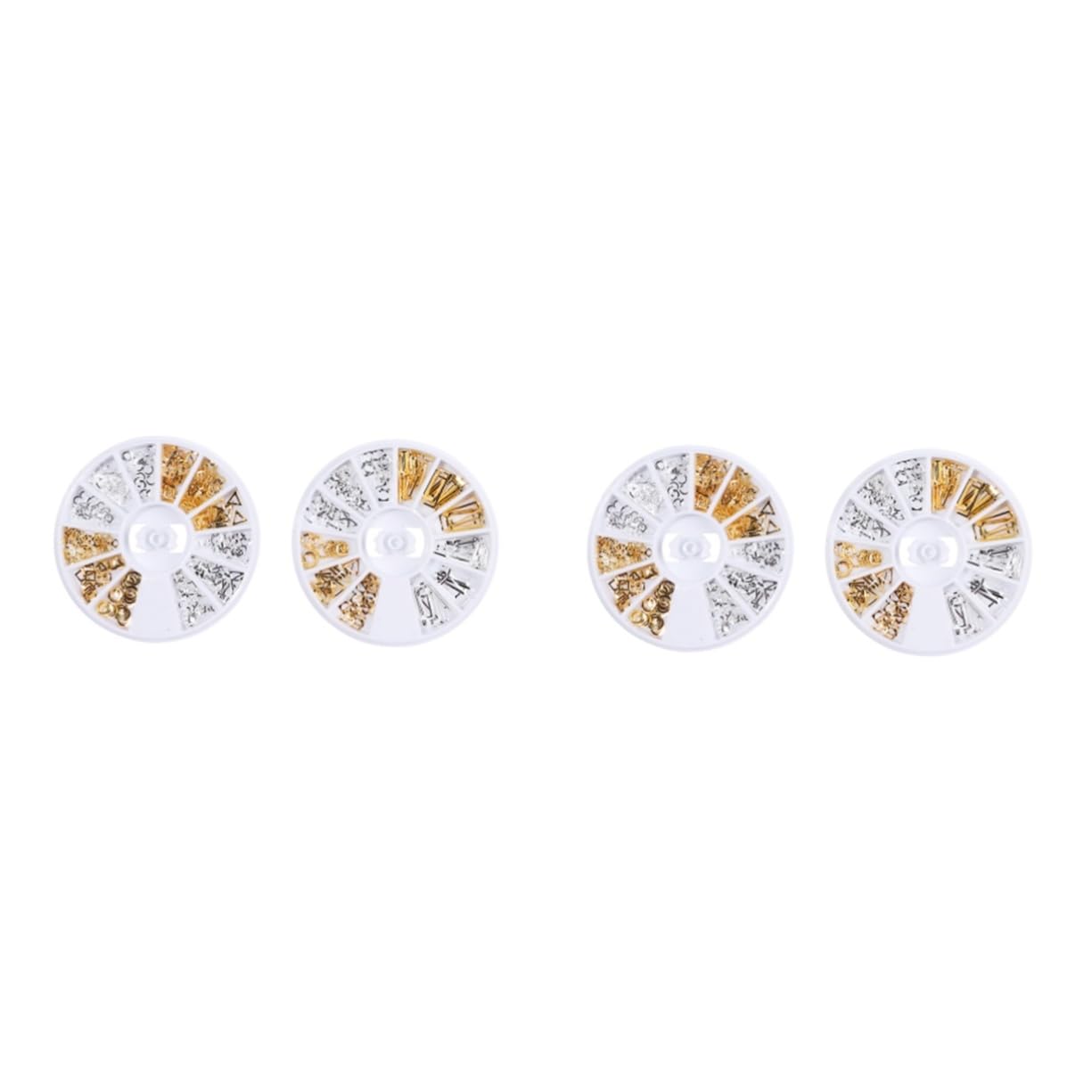 Package Include 4 Boxes x Nail Rivet Features - Color: As Shown Nail Rivet. - Material: Metal Rivet Decoration. - Size: About 3x3x1cm Manicure Rivet. - Different patterns, large quantities to meet your needs DIY Fingernail Patch. - DIY nail art work with your imagination can make you glamorous and attractive Metal Rivet. - Fabulous effect of the decorations will make your nail art more attractive and elegant Manicure Accessories. - They are easy to apply on natural or artificial nails, and can decorate your cell phone, pencil case, and so on. - Suitable for salon or home use. Goods Information Metal Rivet Suitable for DIY nail art decoration lover at home or professional manicure use.Manicure Rivet Be tired of the same nail art every day? Want to DIY the unique nail art as you like? The nail ornaments set can totally satisfy your needs.gold decor After you apply some nail gel to your nail, you can stick them to the nails