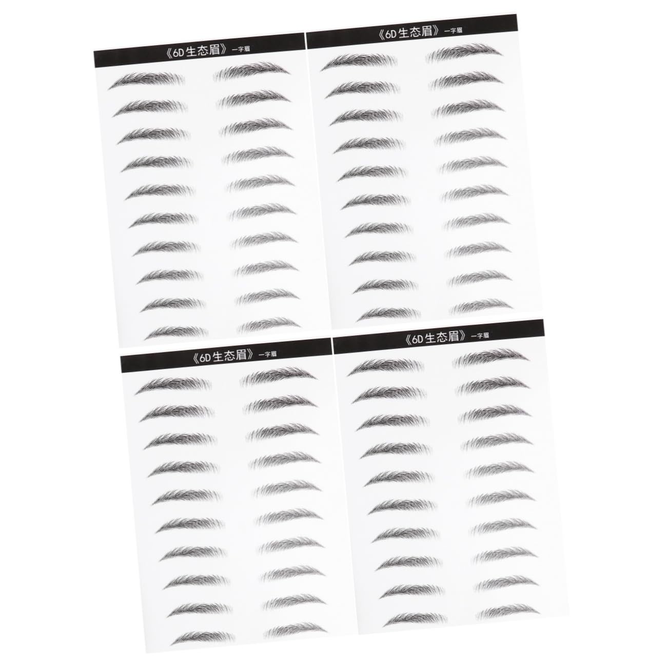 Package List 4 x Sheet of Eyebrow Stickers Characteristics - Color: Black eyebrow makeup tools. - Material: Artificial fiber, film. - Size: About 21x15x0.01cm. - and artificial eyebrow patch. - Cut out a pair of eyebrow stickers first, try to cut on the of the eyebrow as much as possible, don't leave too much blank eyebrow. - It is very convenient and easy to use eyebrow sticker. - If you have eyebrows, use olive oil or petroleum jelly to press down your eyebrows and let your eyebrows stick to your skin. - Can create your own unique eyebrow shape. - The for those who have no eyebrows or fewer eyebrows. Goods Description Eyebrow Makeup Stickers Eyebrows on in seconds! Unlike cosmetic and permanent embroidery, our brows cause absolutely no harm or wounds to skin with no recovery time.brow tatoo These stick-on brows instantly transform your look with full and natural browsEyebrow sticker-- the for those who have no eyebrows or fewer eyebrows. False eyebrows sticker-- it is very convenient and easy to use. Grooming eyebrow stickers-- and . Eyebrow stencil stickers-- can create your own unique eyebrow shape. Waterproof eyebrow sticker-- if you have eyebrows, use olive oil or petroleum jelly to press down your eyebrows and let your eyebrows stick to your skin.