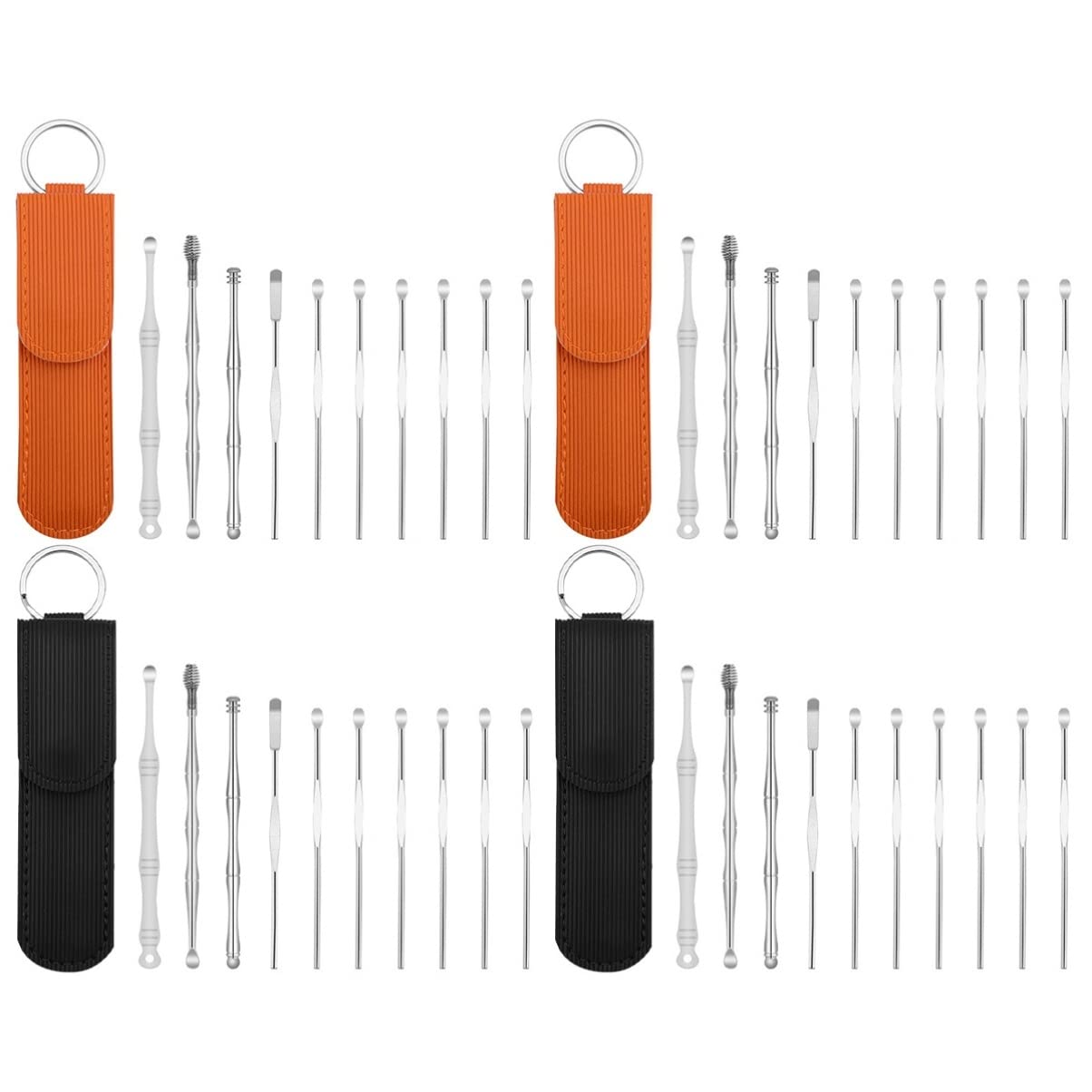 FOMIYES 4sets Adults One- Small Cleaning Massage Pick Bag Pickers and Head Kit Storage Earwax Ear Stainless Remover Picking Outdoor Metal Portable Cleansing Steel Compact Spiral Assorted Colorx2pcs 12.4x3cmx2pcs