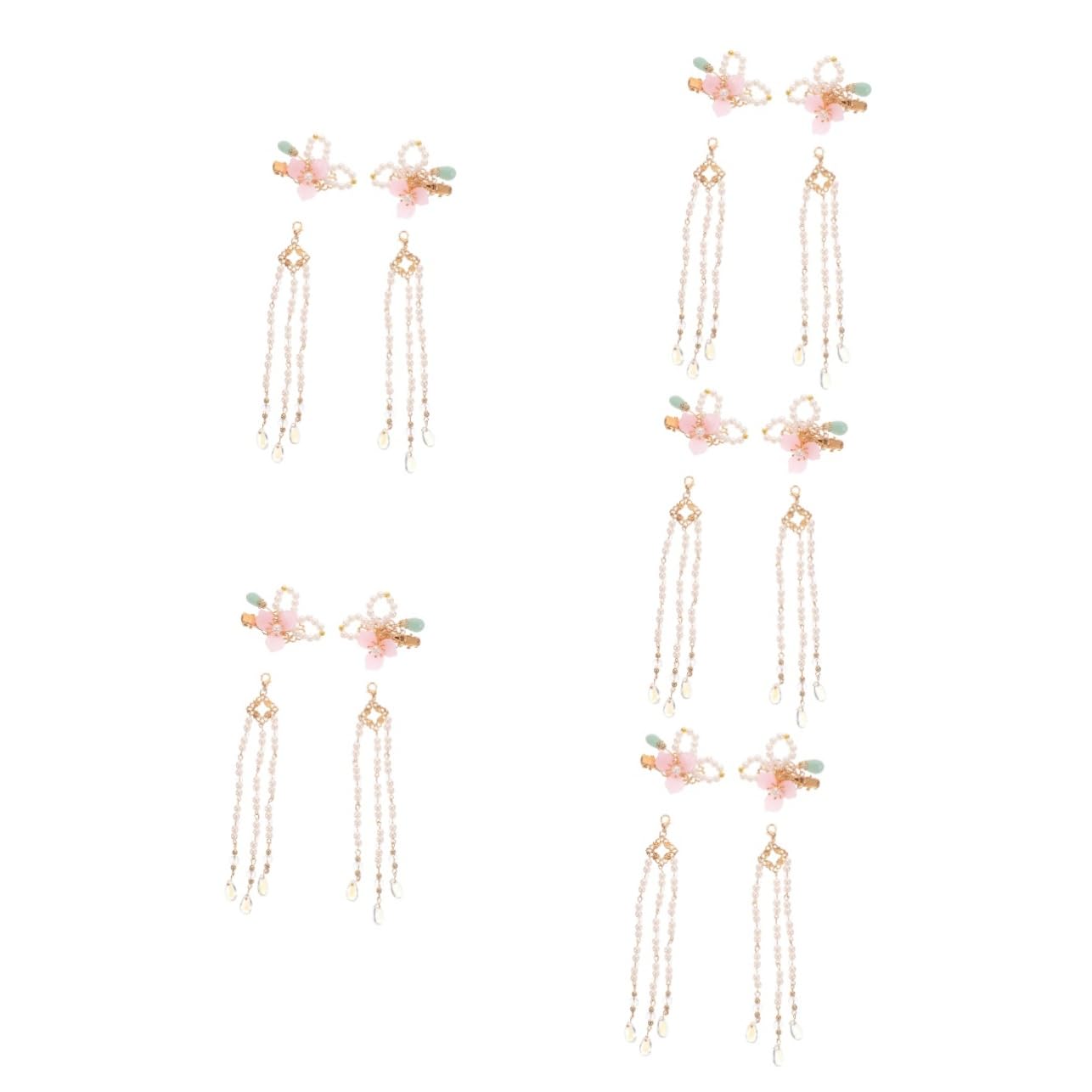 Package List 5 x pair of hair clips Features -Size:14.00X5.00X4.00cm/5.50X1.97X1 lower. -Color:As Shown chinese style barrettes -Material:Pearl, metal flower tassel clip - Excellent for various occasions, such as weddings, parties, special occasions, giving, or daily decoration flower hair clip. - This pearl tassel hair jewelry will make you more unique and dazzling in the crowd, suit for women and girls hanfu hair clip. - Great and pretty hair accessories, suitable for women for Hanfu dressing and for festival party hairstyle hair accessories for girls. - Wearing these Hanfu hair accessories can make you become a beautiful and unique person in the crowd metal hair clips. - This hair jewelry is interspersed with flowers and combined with pearls tassel chains, elegant and charming cherry hair clip. Goods Description kimono hair barrettes A great accessory and decoration for women and girls.hanfu hair clip Vintage Chinese style tassel hair jewelries are wedding, banquet, engagement wearing.hair clip The design of the hair jewelry is creative and vivid, which could add more colors to your hairstyle, helping you to create a lively imagine