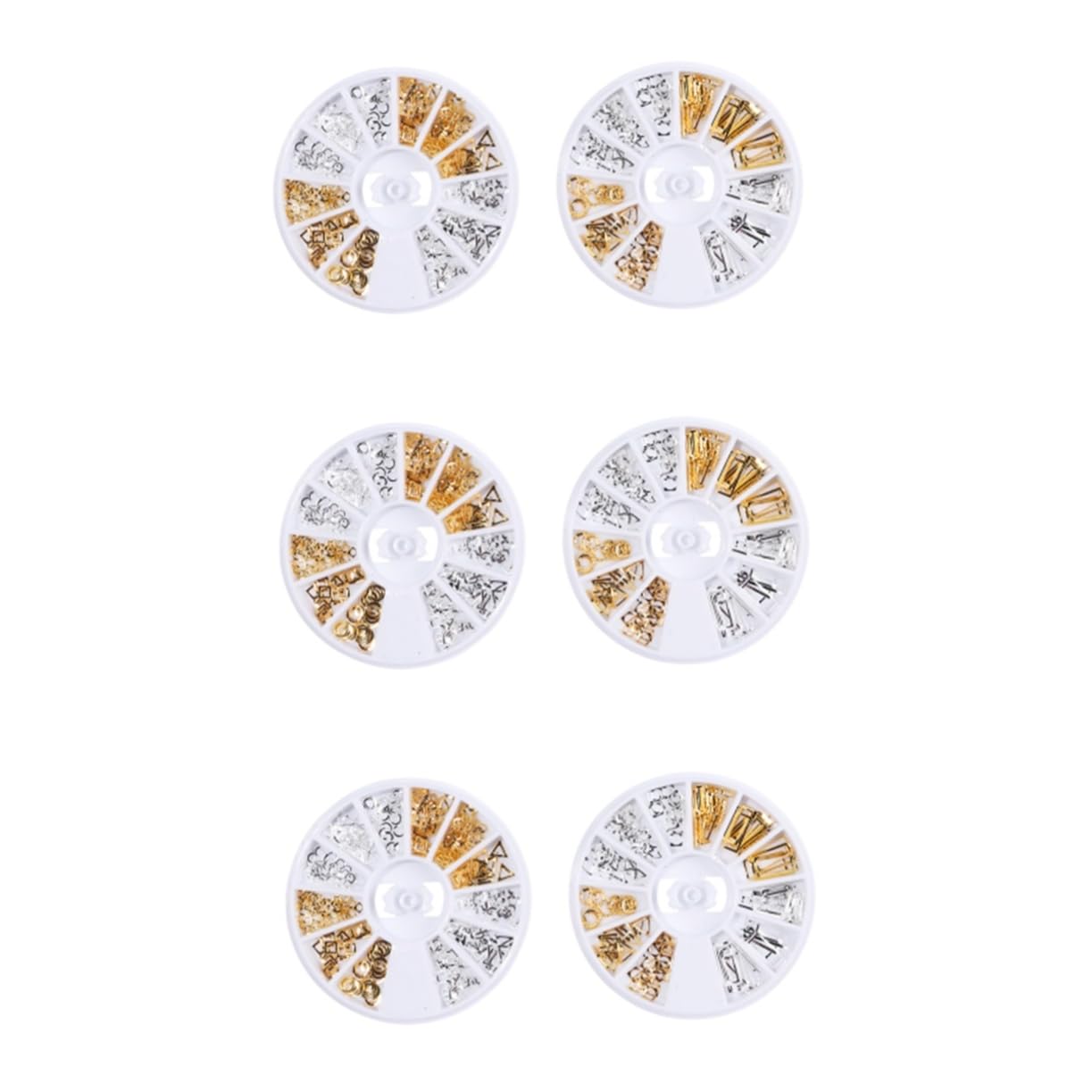 Package List 6 Boxes x Nail Rivet Characteristics - Color: As Shown Rivet Decoration. - Size: About 3x3x1cm Nail Rivet. - Material: Metal Manicure Rivet. - Suitable for salon or home use Metal Rivet. - Different patterns, large quantities to meet your needs DIY Fingernail Patch. - They are easy to apply on natural or artificial nails, and can decorate your cell phone, pencil case, and so on Manicure Accessories. - DIY nail art work with your imagination can make you glamorous and attractive. - Fabulous effect of the decorations will make your nail art more attractive and elegant. Goods Information nail decoration Suitable for DIY nail art decoration lover at home or professional manicure use.appliques embellishments After you apply some nail gel to your nail, you can stick them to the nails.Gold Circle Star Triangle Be tired of the same nail art every day? Want to DIY the unique nail art as you like? The nail ornaments set can totally satisfy your needsGold trim-- they are easy to apply on natural or artificial nails, and can decorate your cell phone, pencil case, and so on. Nail decorations-- DIY nail art work with your imagination can make you glamorous and attractive. Nail rhinestone-- different patterns, large quantities to meet your needs. Gold appliques embellishments-- fabulous effect of the decorations will make your nail art more attractive and elegant. Nails accessories-- suitable for salon or home use.