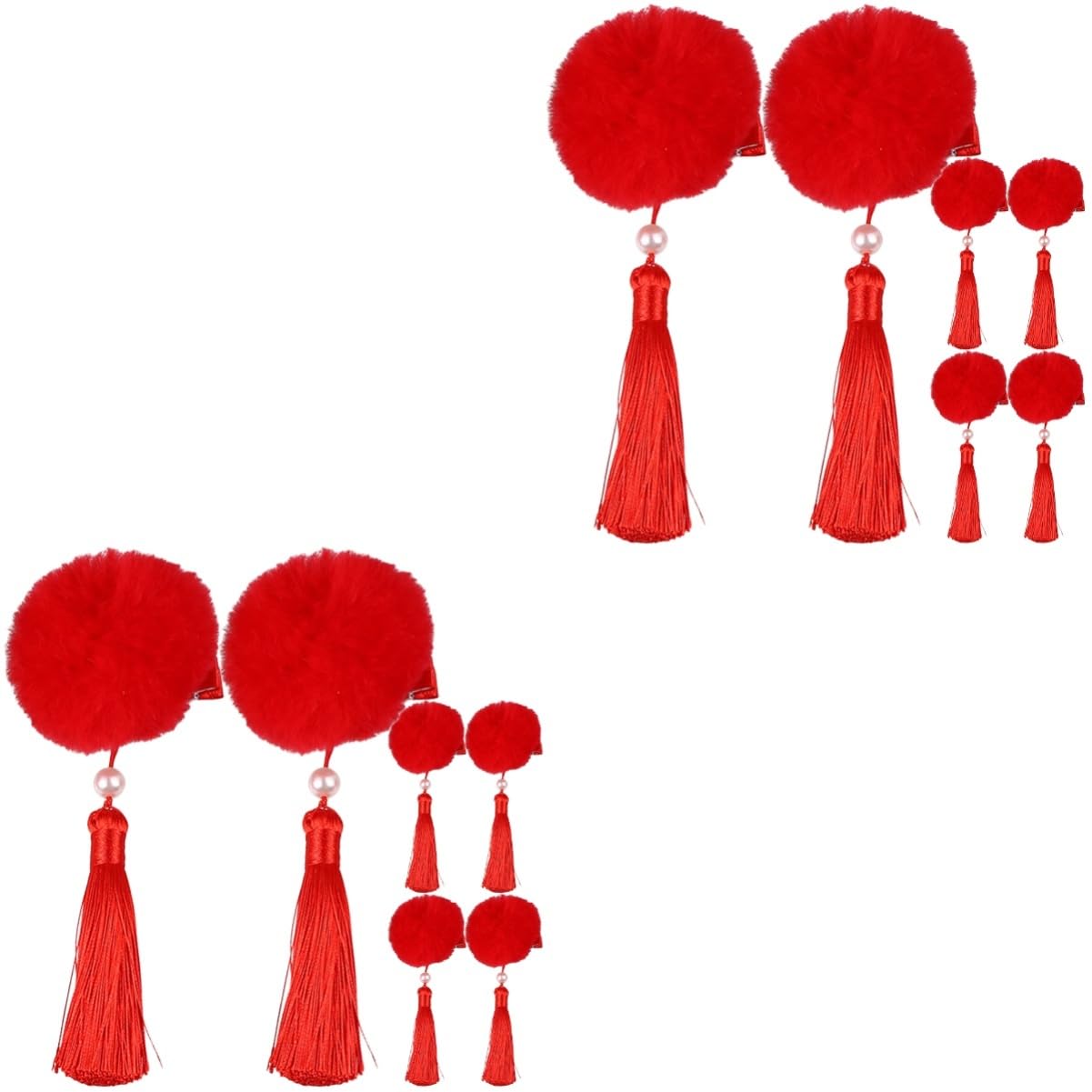 Package Include 6 pairs x hair clips Characteristics -Material:Faux furs tassel hairpin -Color:Red tassel hair clips -Size:15.00X6.00X6.00cm/5.89X2.36X2 hair clips for thick hair. - Suitable size, tassel pendant, provide eye-catching decorative effect, fit for girls dress up chinese tassel hair clip. - decoration. Can be a for your little girls, nieces and family hair clips. - The pompom hair clips feel delicate, wearing it, can make you more beautiful chinese hair accessories. - The pom pom hair clips look very sweet and make girl more attractive when wearing chinese style barrettes. - Chinese style hair accessory, decorated with fluffy balls and long tassels, sweet and lovely hair accessories for girls. Goods Information hair clips Red color are classic symbols of traditional Chinese culture, these tassel pompom hair clips are full of traditional Chinese elements, wearing them will bring a strong festive atmosphere to activities.Chinese Hair Clips Also good for girl.tassel chinese hair clips Very delicate and stylish