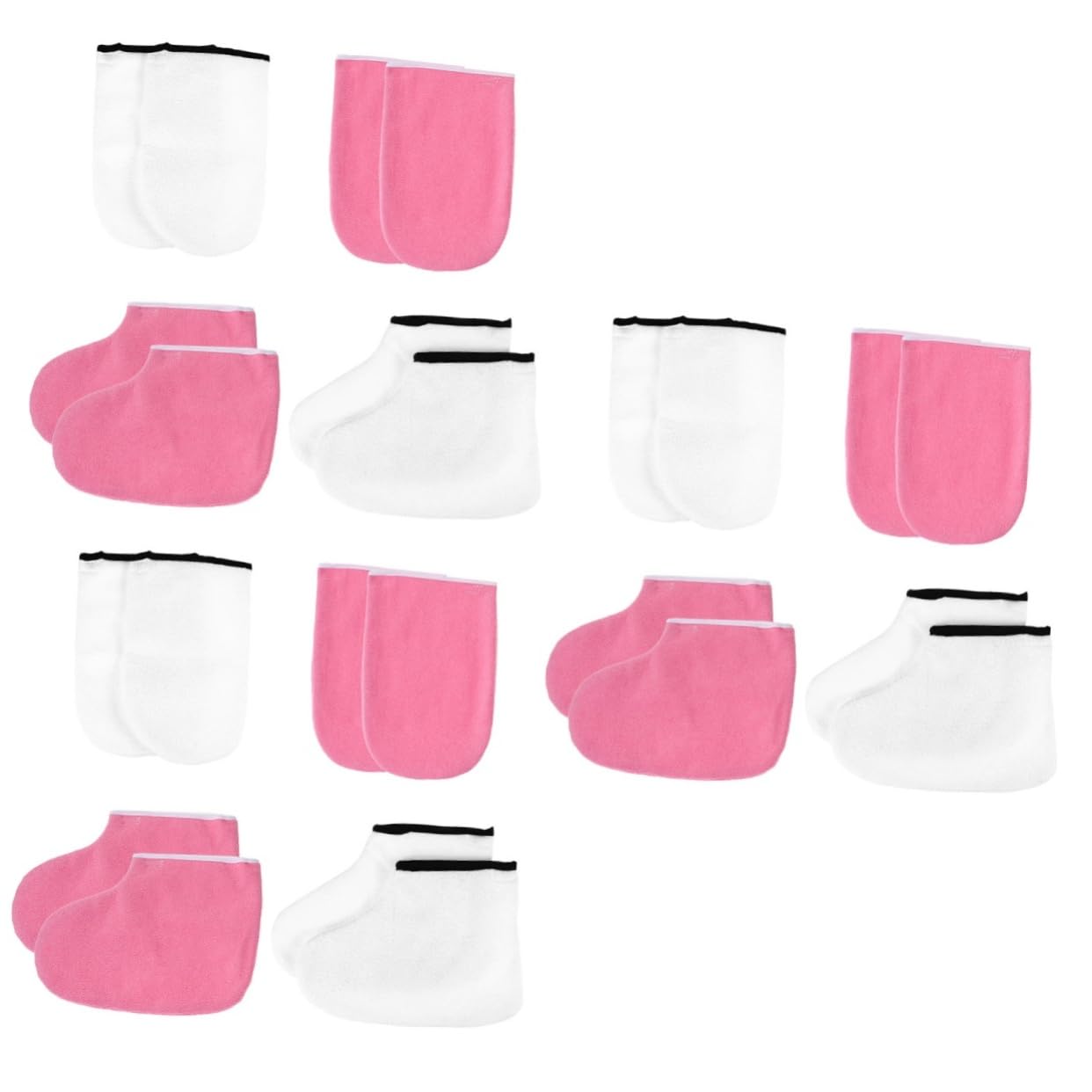 Package Include 6 x pairs of gloves 6 x pairs of socks Features -Size foot cover: About 25.00X20.00cm/9.82X7 Paraffin Hand Cover. -Material: Polyester, cotton paraffin wax bath -Size glove: About 25.00X16.00cm/9.82X6 paraffin wax bath gloves. -Color: White, pink manicure tools -You can get a pair of gloves and a pair of socks for wax at a Wax Heat Foot Cover. -A perfect for your girlfriend, wife, and any other female friends SPA Skin Care Gloves. -Made of premium materials, our products are of reliable quality paraffin wax gloves. -Easy and convenient to use. The air is not easy to enter when you use the gloves and socks, effect ensured foot spa kit. - design, the size of the gloves and socks can fit to almost all people Female SPA Gloves. Goods Information Paraffin Wax Bath Gloves Our product provides a safe and convenient feet and hand skin care .SPA Skin Care Gloves them in disposable glove and booties liners to help absorption.Manicure Foot Cover Evenly apply wax or skin care products to your hands and feet.manicure tools Put your hands and feet into the gloves and booties for 10 to 15 minutes
