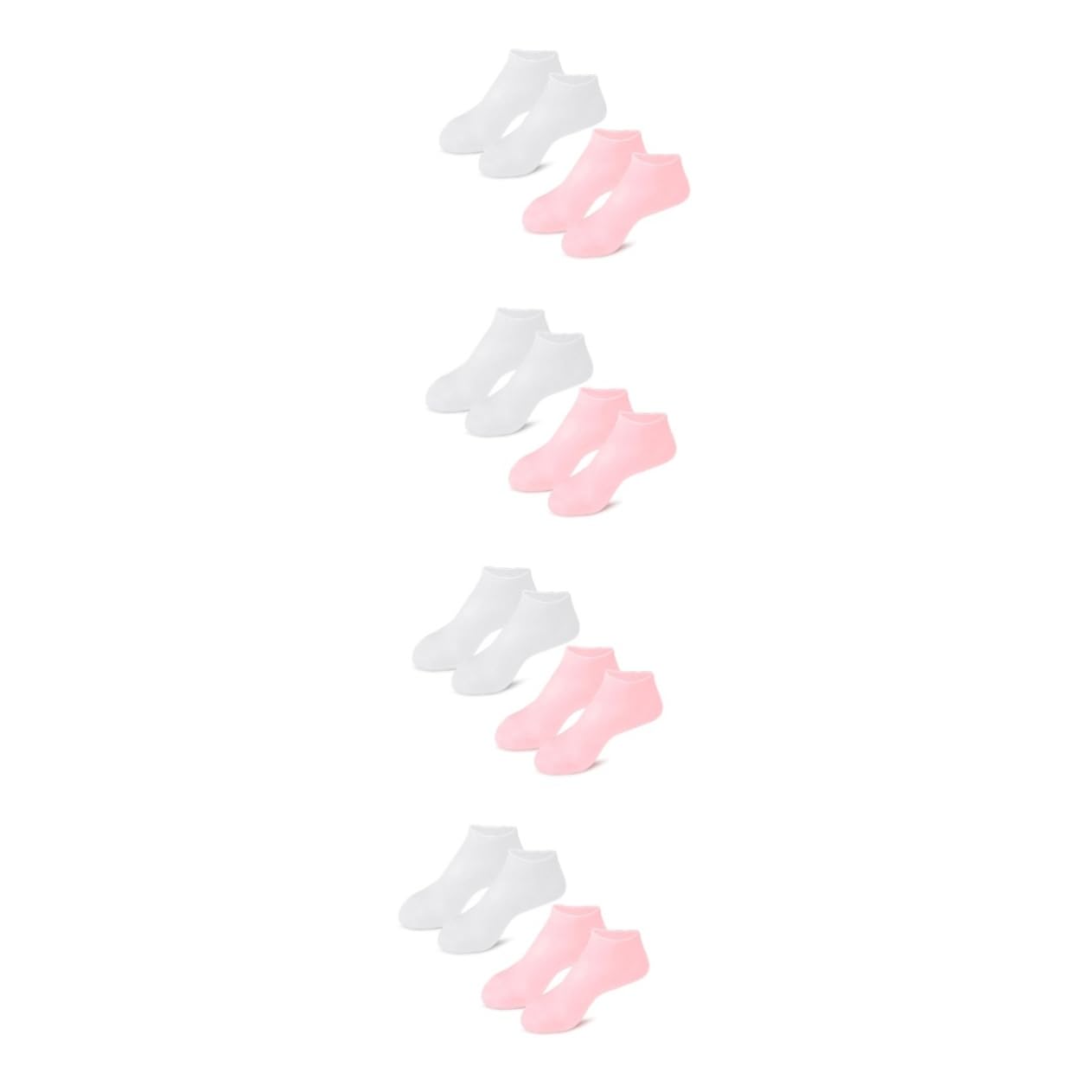 Package Include 8 x Pairs of Socks Characteristics - Color: White, pink Softening moisturizing socks - Material: SEBS Socks for Dry Cracked Feet - Size: About 21.00X9.00X9.00cm/8.25X3.54X3 pedicure socks for girls pedicure foot spa high heels for girls. - Before putting on socks, apply cream or lotion, you will get better and obvious moisturizing effect high heels for girls. - They are good at improving dry cracked skin condition and exfoliate dead skin, great for home pedicure care use protective moisturizing sock. - These socks can provide hydration treatment any time during the day or overnight, convenient and practical dry feet moisturizing socks. - Continuously moisturize the feet skin to restore its natural and healthy appearance, nourish smoothness and increase flexibility skin-friendly care socks. - The best for , mothers and friends on Valentine's Day, birthdays Christmas and other special days moisturizing foot covers. Goods Description cracked feet moisturizing socks Compact size, portable and light in weight, these socks are easy to carry and use.girl heels Adopted of , it is practical and durable for long time use.spa socks It is not easy to get deformed and bring you much convenience