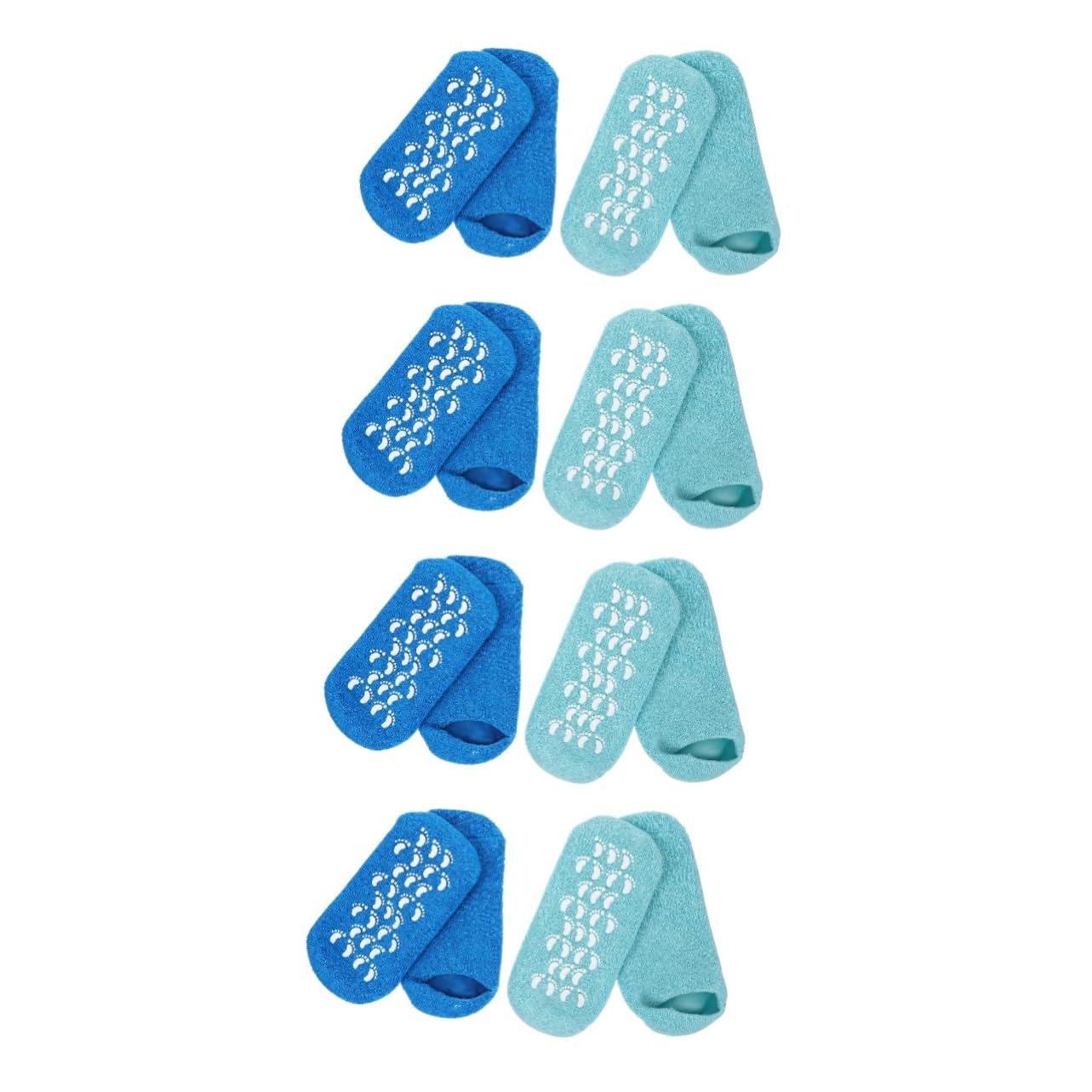 Package List 8 x Pairs of Gel Socks Characteristics -Material:Cotton Yarn, Plant Gel spa use socks -Size:22.00X10.00X1.00cm/8.65X3.93X0 essential oil care socks. -Color:Sky-blue, Dark Blue moisturizing foot covers - Before putting on socks, apply care cream or lotion first, the moisturizing effect will be better and more obvious foot caring socks. - Gel socks are easier to use overnight, and they can prevent the lotion from staining your clothes or sheets household foot care products. - Comfortably provides the moisturizing effect to your entire feet, which greatly soothes and moisturizes the skin foot cover socks. - Small size, light and portable, convenient to carry to any place you want to go foot caring masks. - You can wear them at night or do housework. Bring great convenience to daily life spa socks. Goods Description gel socks premium and healthy material, safe and no odor, you can wear them with confidence.moisturizing foot covers After bathing, apply moisturizing lotion and put on our spa gel socks to moisturize and repair your chapped feet.features socks for women And reusable and durable, not easy to damage, long serving timeMoisturizing heel sleeves: our gel socks are suitable for dry feet, provide good moisturizing effect, and easily moisturize your skin, very practical. Spa use socks: after using our spa gel socks, you can add your favorite skin care products for better results. Heel: help absorb cream or lotion, moisturize dry foot skin, easy to wear and take off, economic. Heel socks for dry cracked feet: suitable for home, beauty salon, spa, paraffin wax care, massage, hot wax , etc. Moisturizing socks cracked heels: comfortably provides the moisturizing effect to your entire feet, which greatly soothes and moisturizes the skin.