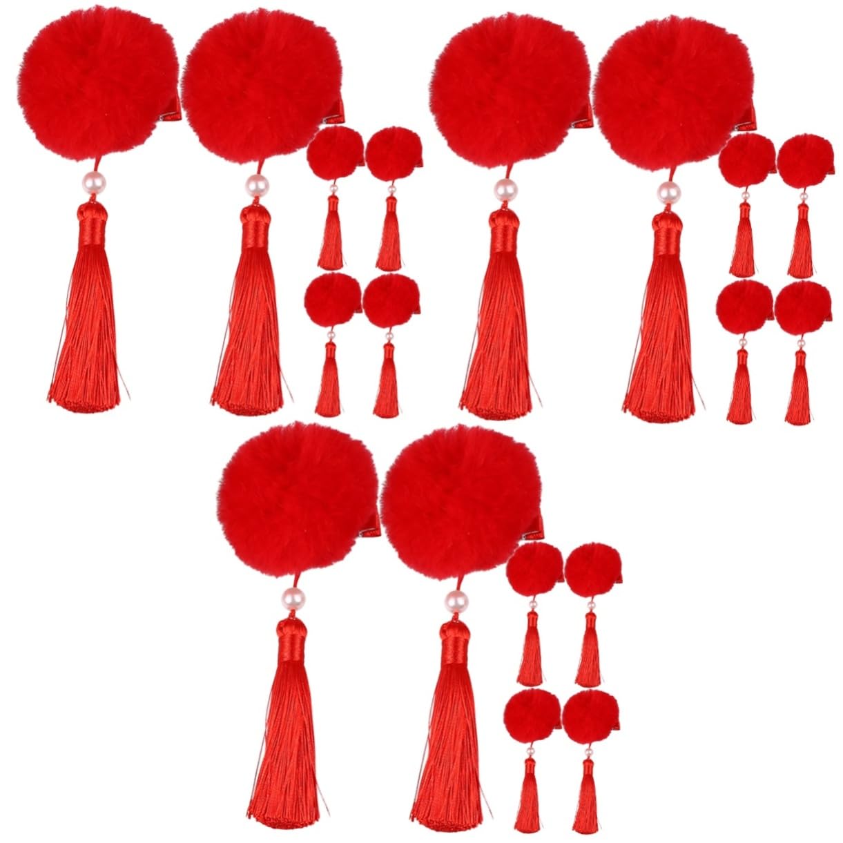 FOMIYES 9 Pairs Tassel Hair Ball Hair Clip Barrettes for Baby Girls Metal Hair Clips Chinese Tassel Hairpin Baby Barrettes Girls Hair Clips Artificial Fur Hanfu China Red Girl Child