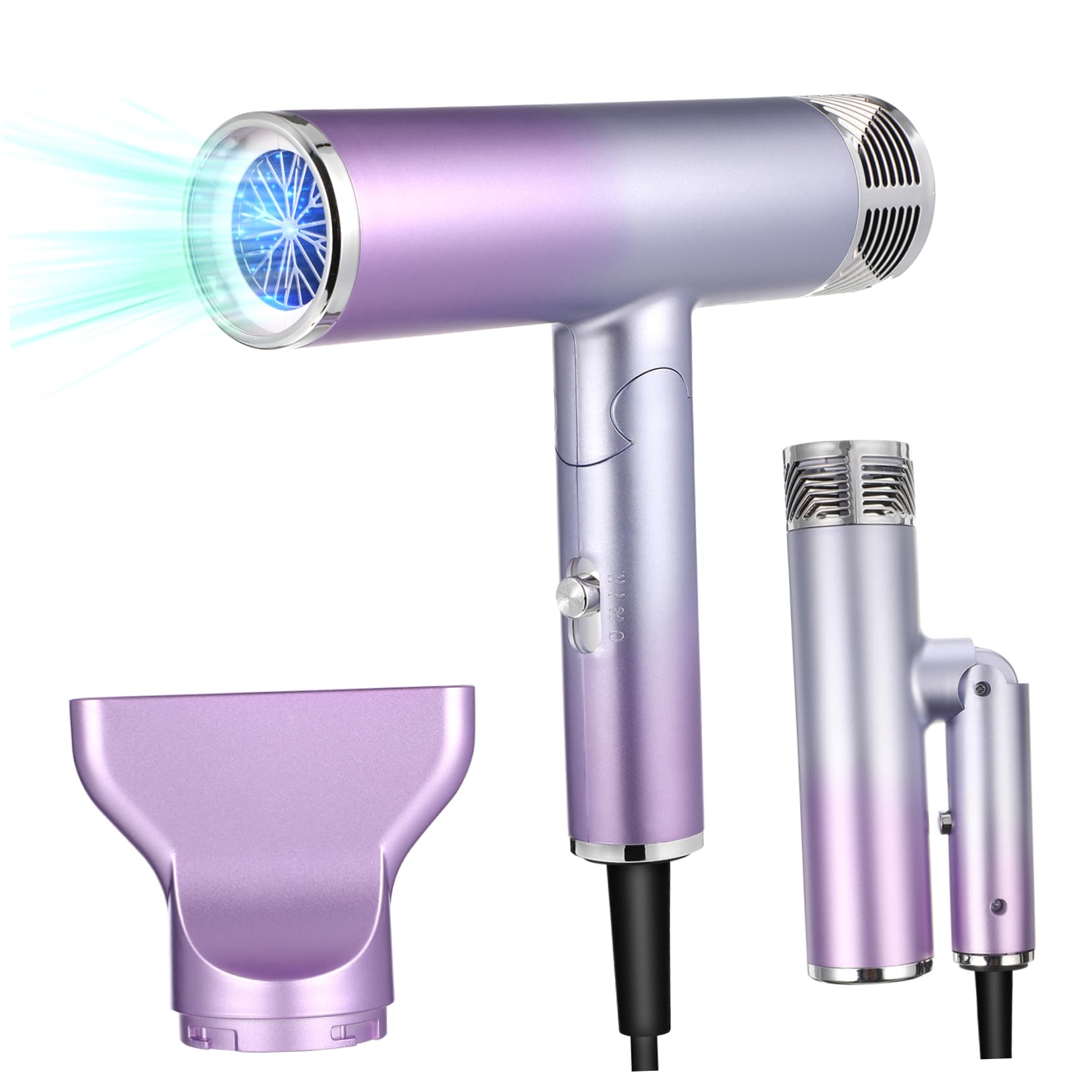 Package Include 1 x hair dryer 1 x instruction manual 1 x air nozzle Characteristics -Noise: 76 small travel blow dryer. -Rated power: 1200W collapsible diffuser for hair dryer -Material:ABS small travel hair dryer - Lightweight and compact: This small hair dryer is suitable for travel use, and its lightweight brings less burden when you are using it hair dryer. -Size:160.00X4.30X3.50cm 62.88X1.69X1 travel blow dryer. -Size:8.50X7.50X4.70cm 3.34X2.95X1 mini hair dryer for travel. -Wind speed: 20m s travel diffuser hair dryer -Speed: 110000RPM folding hair dryer - Home salon: With this hair dryer, you can get a natural curly hair or other beautiful hair styles at home, bringing much comfort travel hair bonnet dryer. -Size:22.50X20.50X5.00cm 8.84X8.06X1 small hairdryer. - Quick drying: This hair dryer can quickly dry your hair without hurting hair much, saving your time and reliable to use small blow dryer. - Hair care: This hair dryer has an intelligent temperature control, which is easy to adjust, providing effective protection foldable blow dryer. -Rated voltage: travel hairdryer -Color:Gradient purple travel hair dryer Goods Information travel hair dryer The adjustable temperature control can better suit your needs.hair dryer This portable hair dryer is space-saving and practical, can be folded in to a compact size, making it convenient to store or carry.folding hair dryer With its powerful drying technology, this hair dryer can quickly dry your hair without damage hair much.mini hair dryer for travel Note: This item comes with US plug, please confirm the voltage of your area before purchgCollapsible diffuser for hair dryer: quick drying: this hair dryer can quickly dry your hair without hurting hair much, saving your time and reliable to use. Small travel hair dryer: hair care: this hair dryer has an intelligent temperature control, which is easy to adjust, providing effective protection. Folding hair dryer: home salon: with this hair dryer, you can get a natural curly hair or other beautiful hair styles at home, bringing much comfort. Travel hair dryer: lightweight and compact: this small hair dryer is suitable for travel use, and its lightweight brings less burden when you are using it. Small travel blow dryer: stylish and beautiful: this gradient color and sleek appearance of this hair dryer is pretty stylish, making it a great addition in your bathroom.