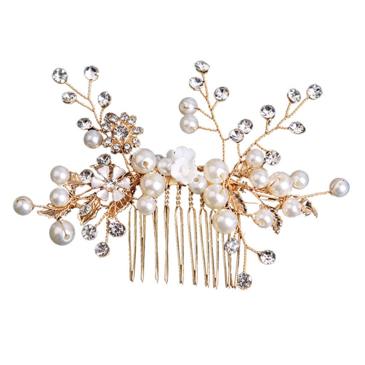 Package Include 1 x hair comb Features -Color:As Shown bride hairpiece -Material:Alloy, pearl girl hair accessories -Size:11.00X7.80X2.00cm/4.32X3.07X0 girl. - You can wear our exquisite pearls hair comb hair pin on different occasions, making you the center of attention hair combs for wedding. - Our pearl hairpin for wedding bride is easy to slide into your bun without causing damage to your hair wedding headpiece. - The hair comb for wedding is portable to use and bring you a comfortable feeling while touching the surface bridal headpieces. - This hairpin for bridal can hold on your hair tightly without hurting your hair, bring you good using feeling pearl hair accessories. - Pearl hair comb is elegant and a nice addition to your hair styles, bring you extra charms and give you a new look flower girl headpieces for wedding. Goods Information flower girl hair accessory The hair comb for wedding is made of alloy and pearl material with elegant design, the whole design is fashion and generous, suitable for wedding bride hair styling decor, birthday, festival and any other occasion