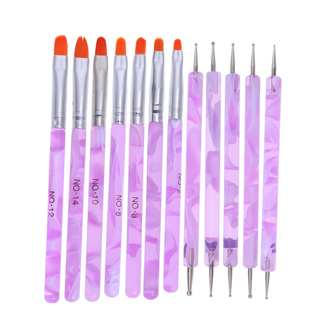 Kit de manicura: include the range of brushes and dotting tools you need for various nail-decoration task, like angle brush, fan brush, sanding brush, flat brush, painting brush, striping brush and drawing brush for drawing fine nail art and more. Acrylic nail brush: make a variety of amazing nail art work in different patterns with this great nail-art supplies. Nail brush: a wide selection of 3-d decorations such as rhinestones and colorful sequins. these 3-d decorations can be applied with topcoat or glue. Nail dotting tool: 5 different size of dotting pens and 7 pcs different nail drawing brushes.