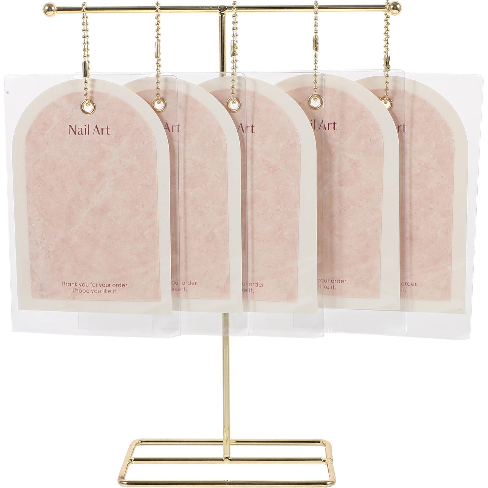 Description The display card and stand is with an exquisite design. Vintage aesthetic adds elegance and individuality. Compact design for convenient storage options. Crafted from stable materials for durability. T-shaped stand for stability and visual impact. Features -Color:As Shown -Material:Paperboard,iron -Size:26.00X19.20X7.50cm/10.22X7.55X2.95in -Size:13.00X9.00X0.50cm/5.11X3.54X0.20in -Exquisite design for showcg: the design of the display card and stand is carefully crafted to showcase the intricate details and craftsmanship. -Vintage style adds uniqueness and charm: the vintage style of the display card and stand adds a touch of uniqueness to the overall presentation, making it stand out from other display options. -Convenient for a neat and organized display area: the display card and stand provide convenient storage, allowing for a neat and organized display area that is easy to set up and maintain. -The display card and stand are made for durability and reliability, allowing them to withstand the weight and pressure without any damage. -T-shaped stand for enhanced display effect: the t-shaped gold stand not only provides stability and support for the display card, but also enhances the display effect by adding elegance and sophistication to the presentation. Package Including 5 x Nail Display Cards with chains and bags 1 x holder rack
