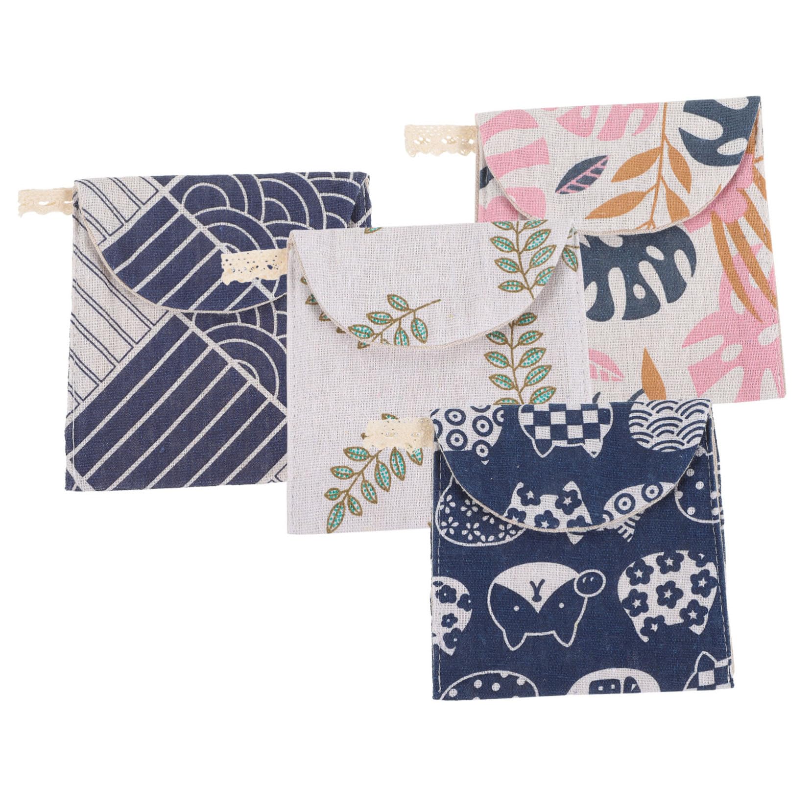 FOMIYES Tampon Organizer 4pcs Tampon Organizer for Bathroom Napkin Holder Menstrual Pad Bag Storage Bag Leaves Monstera Girl Napkin Cotton Linen Cute Pads Pouch Tampon Holder