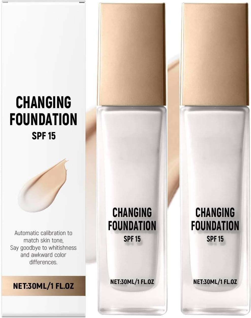 Fond de teint couleur changeante fond de teint thermo-adaptatif longue tenue fini mat doux correcteur couvrance totale pour peaux matures 2pcs