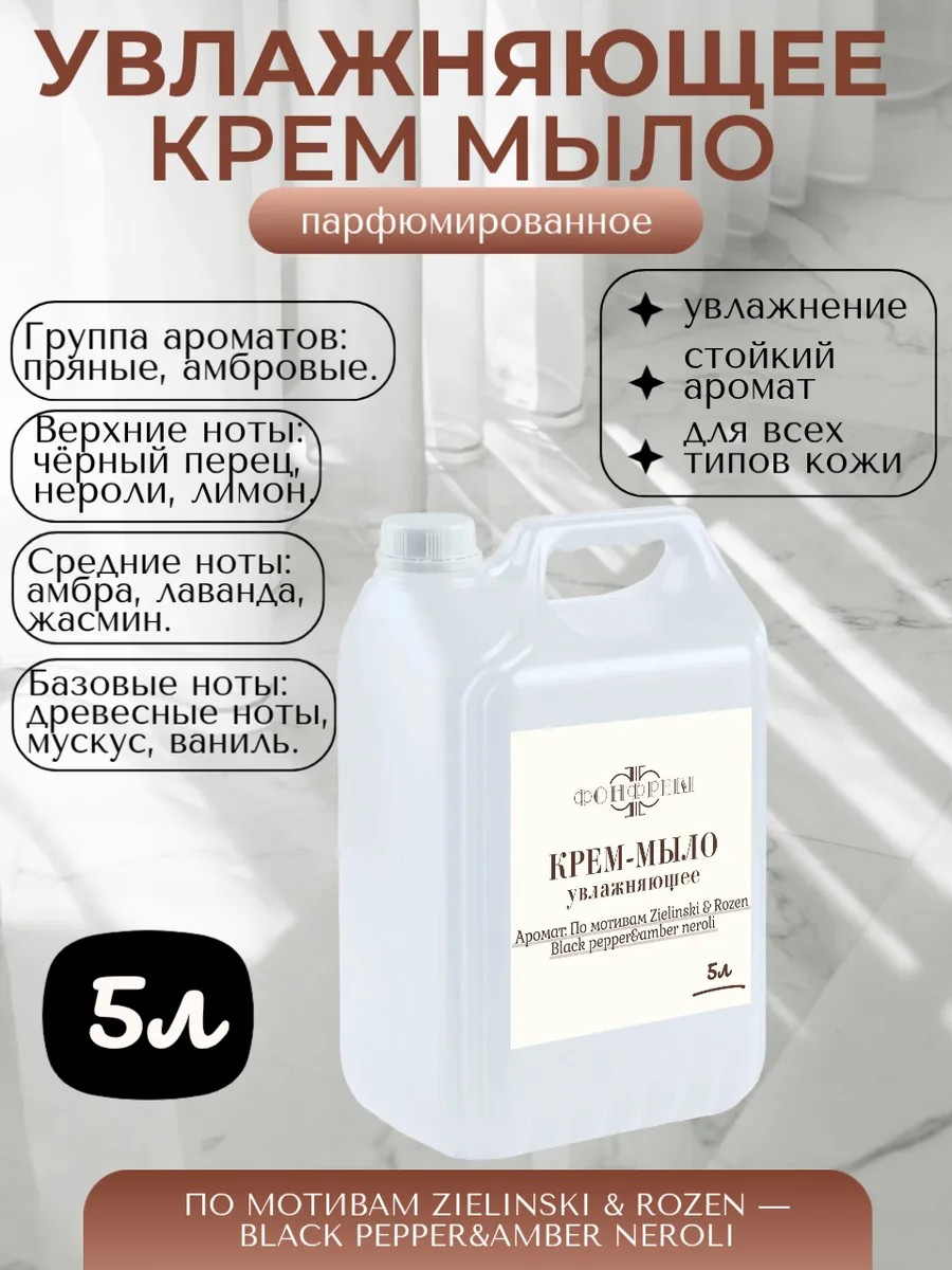 Жидкое крем мыло для рук и тела от ФонФреш объемом 5 литров станет незаменимым помощником для всей семьи. Его нежная формула бережно очищает кожу, оставляя ее мягкой и увлажненной. Аромат Black pepper&amber neroli от Zielinski and Rozen наполнит вашу ванную комнату изысканным и утонченным ароматом, создавая атмосферу релаксации и умиротворения. Это крем-мыло идеально подходит для ежедневного использования, как для рук, так и для тела. Его богатая текстура превращает обычное мытье в приятный ритуал, даря коже ощущение комфорта и свежести. Удобная упаковка объемом 5 литров обеспечит вас запасом средства надолго, что особенно актуально для большой семьи или для использования в общественных местах.