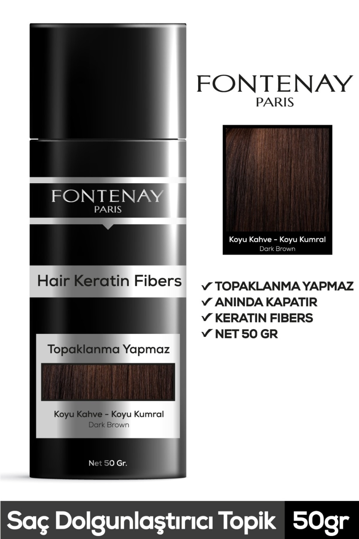 Fontenay Hair Volumizing Keratin Fibers Dark Brown Topical Hair Powder 50gr
