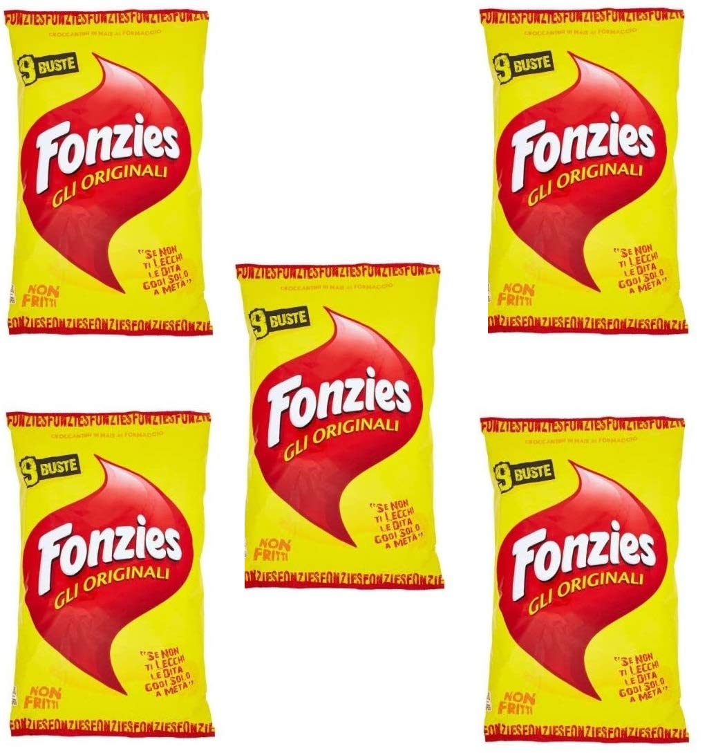 Ingredients: Corn semolina, 62 , sunflower oil, processed cheese, lactose powder, salt, flavorings, baking powder, yeast extract, flavor enhancers (E621, E627, E631), lactose (from milk), smoke flavoring. May contain wheat, peanuts. Sunflower oil may be replaced with alternative oils. See product packaging. INGREDIENTS Ingredients: Corn semolina, 62 , sunflower oil, processed cheese, lactose powder, salt, flavorings, baking powder, yeast extract, flavor enhancers (E621, E627, E631), lactose (from milk), smoke flavoring. May contain wheat, peanuts. Sunflower oil may be replaced with alternative oils. See product packaging. INSTRUCTIONS FOR USE Open the bag and enjoy. For optimal flavor, you can combine these chips with a dip or topping. MANUFACTURER'S DETAILS MONDELEZ ITALIA S.R.L., VIA MARCELLO NIZZOLI 3, 20147, MILAN, IT See moreFonzies Lot de 45 collations de maïs avec fromage 211 g en 5 pour 9 sachets de 23 g de chipsDESCRIPTION DU PRODUIT DESCRIPTION DU PRODUIT Ingrédients : semoule de maïs, 62 , huile de tournesol, fromage fondu, poudre de lactose, sel, arômes, poudre à pâte, extrait de levure, exhausteur de goût (E621, E627, E631), lactose (du lait), arôme de fumée. Peut contenir du blé, des arachides, l'huile de tournesol peut être remplacée par des huiles alternatives. Voir emballage du produit INGRÉDIENTS Ingrédients : semoule de maïs, 62 , huile de tournesol, fromage fondu, poudre de lactose, sel, arômes, poudre à pâte, extrait de levure, exhausteur de goût (E621, E627, E631), lactose (du lait), arôme de fumée. Peut contenir du blé, des arachides, l'huile de tournesol peut être remplacée par des huiles alternatives. Voir emballage du produit MODE D'EMPLOI Ouvrez le sac et profitez-en. Pour un goût plus optimal, vous pouvez combiner ces chips avec une trempette ou une garniture. COORDONNÉES DU FABRICANT MONDELEZ ITALIA S.R.L., VIA MARCELLO NIZZOLI 3, 20147, MILANO, IT Voir plus