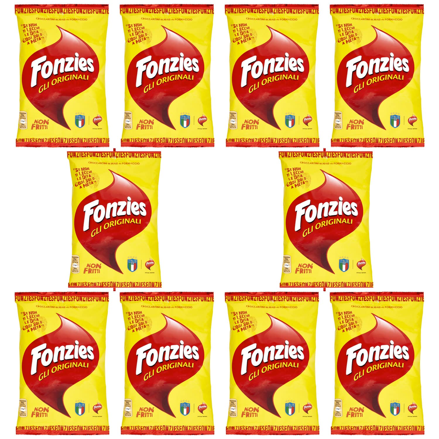 Pack of 10 boxes of Fonzies Gli Originali "cheesy corn snack", 40g. The new Italian Fonzies cheese-flavored corn snack. This is a crunchy, wavy-coated snack, perfect for between meals. Heavenly delicious, distinctive, and unique: highly addictive. The special thing about Fonzies is that they are not fried. It's worth a try. Best before 31 05 2018. Ingredients: Corn red 61.8 , vegetable fat, cheese powder 6 , whey powder, salt, flavorings, dried yeast, yeast extract, flavor enhancers (E-621, E-627, E-631). Contains milk. May contain traces of wheat and nuts. Net weight: 400 g. Storage instructions: Store in a cool, dry place. Responsible food company: Mondelez Italia. Via Nizzoli 3 - 20147. Milan, Italy. Country of origin: Italy. INGREDIENTS Corn semolina, 62 , sunflower oil, processed cheese powder, 6 whey, salt, flavorings, yeast extract, flavor enhancers (E621, E627, E631), lactose (from milk), smoke flavoring. May contain wheat, peanuts.Fonzies Gli Originali Lot de 10 collations de maïs au goût fromage 40 gDESCRIPTION DU PRODUIT DESCRIPTION DU PRODUIT Lot de 10 boîtes Fonzies Gli Originali « collation de maïs au goût fromage », 40 g. La nouveauté italienne du snack de maïs Fonzies au goût fromage. Il s'agit d'une collation croustillante en fourrure ondulée à utiliser entre les deux. Plaisir céleste, distinctif et unique : « risque de dépendance aiguë ». La particularité des Fonzies est qu'elles ne sont pas frites. Il vaut la peine d'essayer. À consommer avant le 31 05 2018. Ingrédients : rouge de maïs 61,8 , graisse végétale, poudre de fromage 6 , poudre de lactosérum, sel, arômes, levure séchée, extrait de levure, exhausteur de goût (E-621, E-627, E-631). Contient du lait. Peut contenir des traces de blé et de noix. Poids net : 400 g. Conseils de conservation : Conserver dans un endroit frais et sec. Entreprise alimentaire responsable : Mondelez Italia. Via Nizzoli 3 - 20147. Milano Italy. Pays d'origine : Italie. INGRÉDIENTS Semoule de maïs, 62 , huile de tournesol, fromage fondu, en poudre, 6 de lactosérum, sel, arômes, extrait de levure, exhausteur de goût (E621, E627, E631), lactose (du lait), arôme de fumée, peut contenir du blé, des arachides