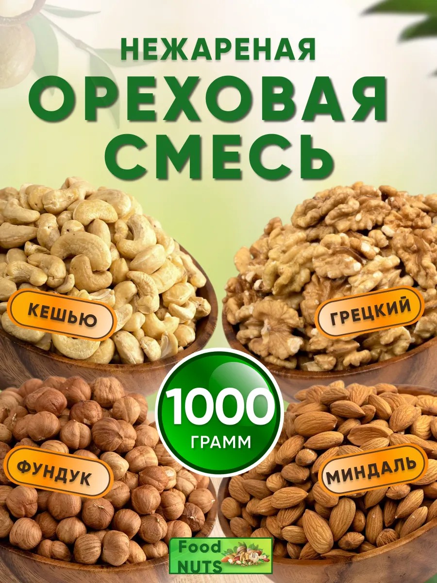 Смесь орехов сырые из сушеных орехов нового урожая: Греций орех, миндаль сырой, фундук сырой, кешью сырой. Самых полезных и ситных продуктов для перекуса можно назвать как раз орехи. Ореховая смесь 1 кг/500гр состоит из из цельного сушёного фундука, отборного сырого ореха кешью, сырого миндаля и очищенного грецкого ореха. Каждый вид орехов в отдельности очень вкусный и полезный. Каждый из видов примерно по 25 процентов от общей массы. Кроме всего прочего, орехи набор - это прекрасные антиоксиданты и необходимый компонент питания при росте костей и мышц, что особенно важно для детей, беременных и всех, кто занимается физическим трудом. Все орехи тщательно отобраны и очищены, чтобы обеспечить вам максимальное количество полезных веществ. Орехи - это отличный источник белка, клетчатки и здоровых жиров, которые необходимы для поддержания здоровья сердца, нормализации уровня сахара в крови и поддержания здоровой кожи. Кроме того, орехи богаты витаминами и минералами, такими как витамин Е, магний и калий. Наш набор орешков - это идеальный способ добавить полезные продукты в свой рацион питания. Вы можете есть их в качестве перекуса, добавлять в салаты, каши или использовать в качестве ингредиента для приготовления полезных блюд. В нашем наборе орехов вы найдете Это идеальный размер для тех, кто хочет поддерживать здоровое питание и получать все необходимые полезные вещества. ореховая смесь