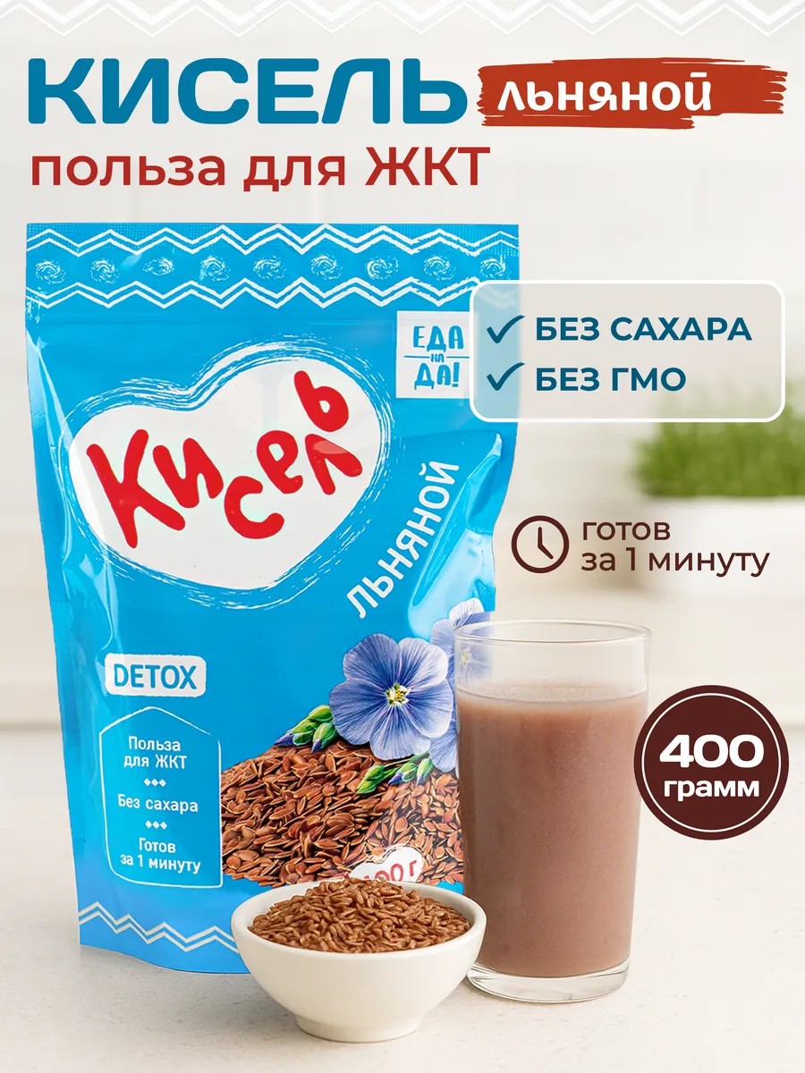 Кисель льняной быстрорастворимый, польза для ЖКТ, 400 г