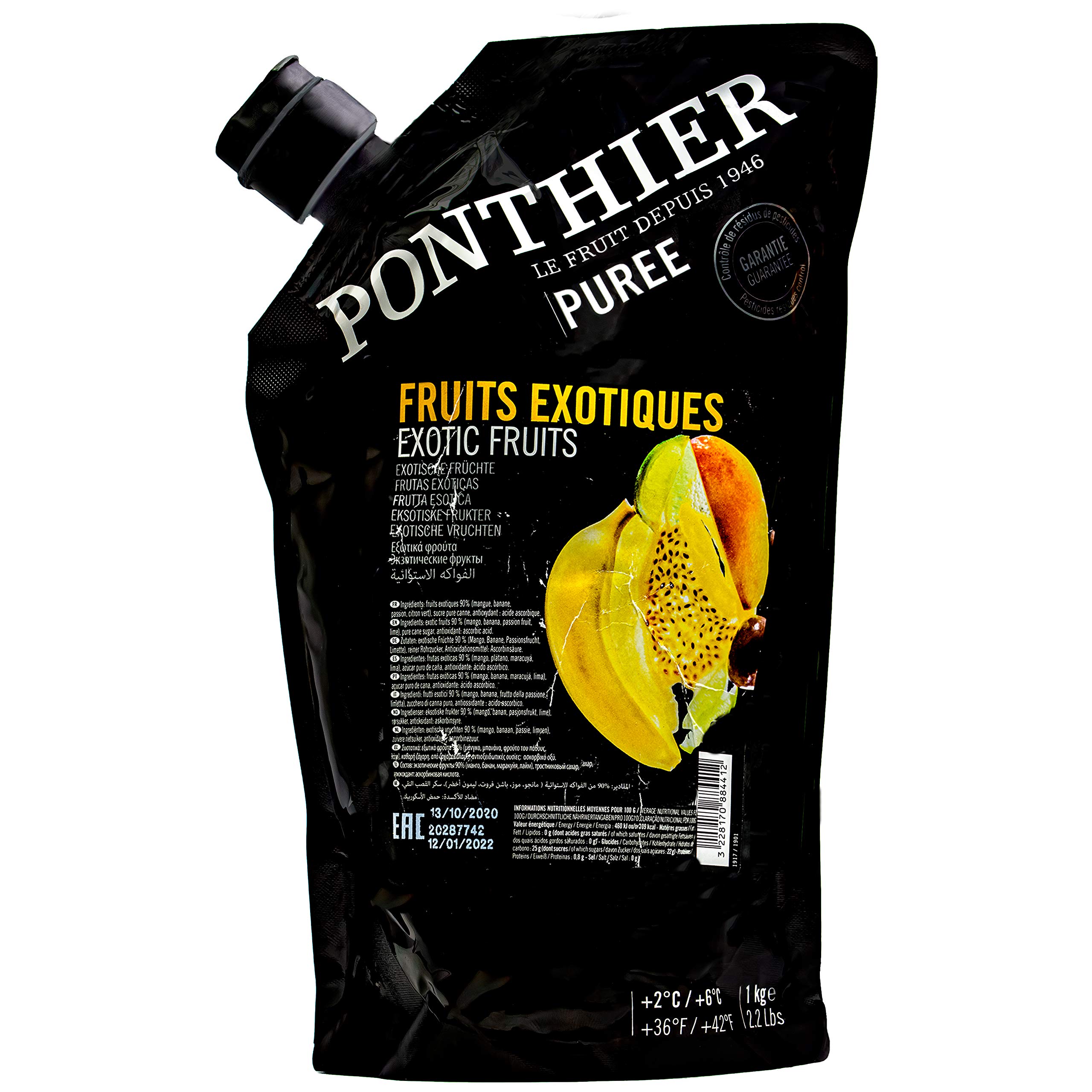 In order to be able to rule out any pesticide residues in the pubes and to guarantee food safety, the fruits are subject to regular, systematic controls of an independent, German laboratory. The conscious avoidance of dyes, preservatives, flavors and other artificial additives ensures that we can offer you a puree of the highest quality, almost all ponthier fruit purees have 100 fruit content. On each packaging it is noted where the processed fruit comes from and which variety it belongs.The BRIX degree of the respective fruit is also noted.The more mature the fruit is, the naturally stopping bar it is after processing due to the high proportion of fructose.The nutrient content of vitamins and minerals is the highest and taste most fully developed for fully developed, ripe fruits.We enable a high transparency of our products and a complete traceability of the ingredients used. After opening, the puree is kept, durable or can be frozen for at least 12 days, chilled, durable or can be frozen without hesitation. Cocktail Spirit of Jalisco 4Cl Tequila Silver 100 Agave 5Cl food-united exotic fruit puree 2Cl food-united lime puree 2Cl agavens syrup 1 piece of fresh allspice First crush the fresh allspice into a shaker cup, then give the other ingredients in the shakers filled with ice.Shake, then pour into a glass filled with ice cubes.Finally decorate with a small pimet cod Ingredients ingredients 90 exotic fruits (mango, banana, passion fruit, lime), pure cane sugar, antioxidant: ascorbic acid Address manufacturer importer S.Mile GmbH Ickerner Straße 3a 45731 Waltrop MorePerfekt for cakes, tarts, smoothie bowls, ice cream, cocktails, yoghurts, mueslis, curd or other desserts.Our purees can be used in many ways.Sorbet you enjoy the puree frozen as sorbet.If you like it sweeter, you can simply add some icing sugar to water in water.smoothies The fruit puree can be combined wonderfully with the flavors raspberry, bine and blackberry.Delicious smoothies are quickly prepared with milk or delicious yogurt.Vitamine The fruits are full of vitamins.Since our fruit purees are made with fruits at the peak of their maturity, no ingredients are lost.GEOD The delicious, exotic fruit puree consists of alphono mangos from India, bananas from Ecuador, Flavicarpa Passion fruits from Ecuador and Limetten from Mexico.Um eventuelle Pestizidrückstände in den Pürees ausschließen zu können und die Lebensmittelsicherheit zu garantieren unterliegen die Früchte regelmäßiger, systematischer Kontrollen eines unabhängigen, deutschen Labors. Der bewusste Verzicht auf Farbstoffe, Konservierungsstoffe, Aromen und andere künstliche Zusätze sorgt dafür, das wir Ihnen ein Püree höchster Qualität anbieten können, Fast alle Ponthier Fruchtpürees haben 100 Fruchtgehalt. Auf jeder Verpackung ist vermerkt, woher die verarbeitete Frucht stammt und welcher Sorte sie angehört. Auch der BRIX-Grad der jeweiligen Frucht ist vermerkt. Je reifer das Obst ist, umso natürlich haltebarer ist es nach der Verarbeitung durch den hohen Fruchtzuckeranteil. Der Nährstoffgehalt an Vitaminen und Mineralstoffen ist bei voll entwickelten, reifen Früchten am höchsten und geschmacklich am vollendtesten. So ermöglichen wir eine hohe Transparenz unserer Produkte und eine lückenlose Rückverfolgbarkeit der verwendeten Zutaten. Nach dem Öffnen ist das Püree mindestens 12 Tage, gekühlt aufbewahrt, haltbar oder kann bedenkenlos lang eingefroren werden. Cocktail Spirit of Jalisco 4cl Tequila Silver 100 Agave 5cl Food-United Exotisches Fruchtpüree 2cl Food-United Limettenpüree 2cl Agavensirup 1 Stück Frischen Piment Zuerst den frischen Piment in einem Shakerbecher zerstoßen, danach die übrigen Zutaten in den zu zwei Dritteln mit Eis gefüllten Shaker geben. Schütteln, danach in einen mit Eiswürfeln gefülltes Glas füllen. Abschließend mit einer kleinen Pimentschote dekorieren INHALTSSTOFFE ZUTATEN 90 Exotische Früchte (Mango, Banane, Passionsfrucht, Limette), reiner Rohrzucker, Antioxidationsmittel: Ascorbinsäure ANSCHRIFT HERSTELLER IMPORTEUR S.Mile GmbH Ickerner Straße 3a 45731 Waltrop MehrPERFEKT FÜR Kuchen, Torten, Smoothie-Bowls, Eiscreme, Cocktails, Joghurts, Müslis, Quark oder andere Desserts. Unsere Pürees sind vielfältig einsetzbar. SORBET Genießen Sie das Püree eingefroren als Sorbet. Wenn Sie es süßer mögen, können Sie einfach etwas Puderzucker in Wasser ausgelöst hinzugeben. SMOOTHIES Das Fruchtpüree lässt sich wunderbar mit den Geschmacksrichtungen Himbeere, Bine und Brombeere vereinen. Mit Milch oder leckerem Joghurt sind köstliche Smoothies schnell zubereitet. VITAMINE Die Früchte stecken voller Vitamine. Da unsere Fruchtpürees mit Früchten auf dem Höhepunkt ihrer Reife hergestellt werden, gehen keinerlei Inhaltsstoffe verloren. HERKUNFT Das köstliche, exotische Fruchtpüree besteht aus Alphonso-Mangos aus Indien, Bananen aus Ecuador, Flavicarpa-Passionsfrüchte aus Ecuador und Limetten aus Mexiko.Food-United EXOTIC PÜREE Mango Banane Maracuja Limette exotische Früchte-Püree von Ponthier 12x 1KG Frucht-Smoothie-Bowl-Sorbet-Panna-Cotta-Quark-Müsli ohne künstliche Zusätze 12 KG