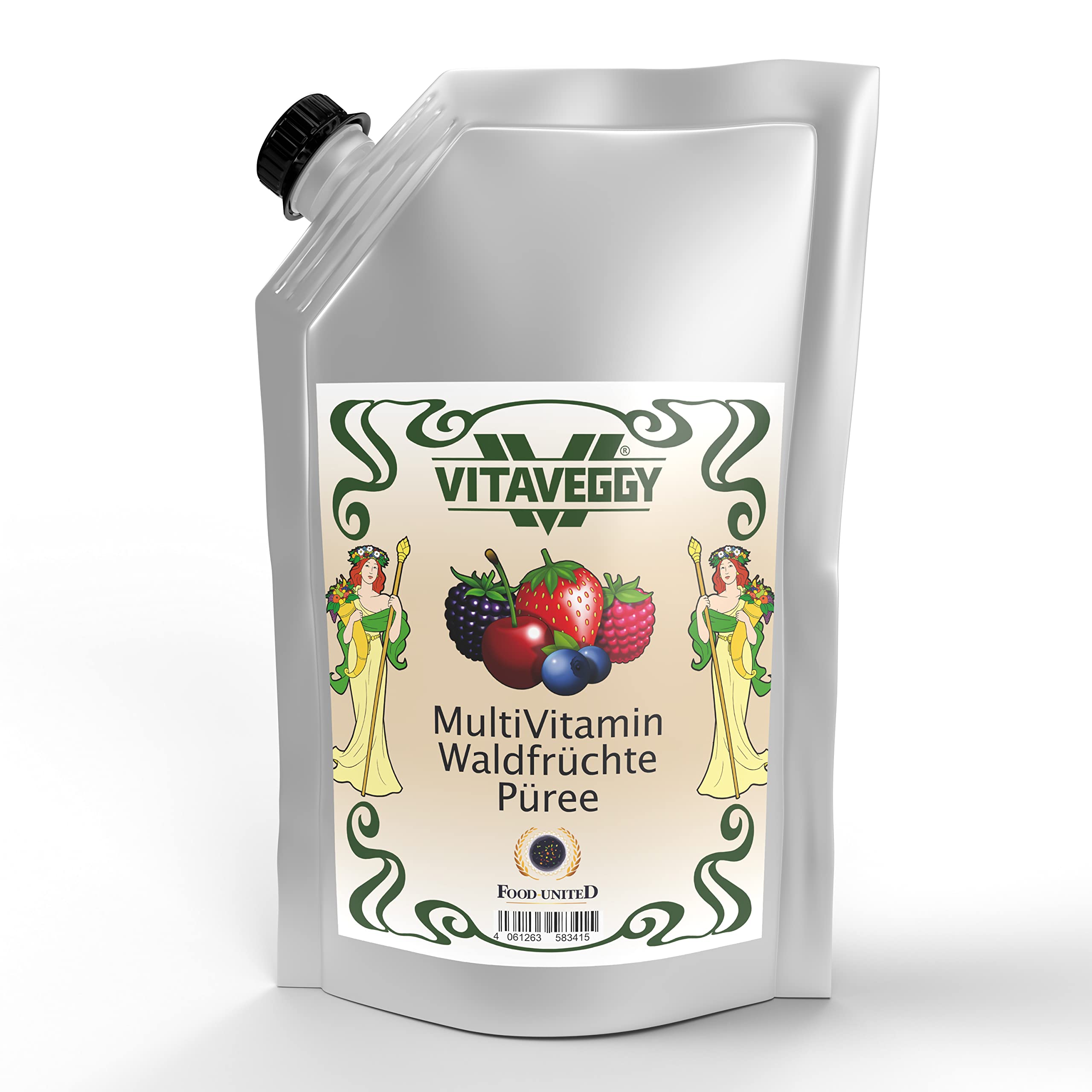 With this forest fruit puree, you and your family can enjoy the taste of ripe wild berries all year round. The high berry content (90.4 ) includes raspberries, sour cherries, strawberries, blueberries, and blackberries—nature's wholesome treats with an irresistible taste. Wild berries contain vitamins A, C, and E, as well as anthocyanins, phosphorus, folic acid, iron, magnesium, and zinc. They are said to boost the immune system and have a positive effect on digestion. Food-United's fruit puree is ready to eat, eliminating the time spent peeling, chopping, and boiling fruit. The viscous, thick, and smooth fruit puree is free of fiber, seeds, and pits, making it incredibly versatile. It gives juices, soft drinks, jams, ice cream, cocktails, and ice pops a wonderful aroma and is a pure delight. Fruit puree is also ideal for making baby food or as a healthy dessert alternative. Babies (from 6 months) and children will enjoy this wholesome fruit puree, and so will their parents. Whether on its own or mixed with milk and cereal flakes, a meal or snack can be quickly prepared at home or on the go. Another advantage of VITAVEGGY Multivitamin Fruit Puree is its long shelf life. The fruit is preserved in a special and gentle way, allowing the puree (unopened) to be stored for several months without refrigeration. Now you can enjoy the authentic taste of wild berries with VITAVEGGY Multivitamin Wild Berry Puree (gluten-free and vegan). Food-United - S.Mile GmbH Ickerner Straße 3a 45731 Waltrop INGREDIENTS Forest fruits 90.4 (raspberry, sour cherry, strawberry, blueberry, blackberry), sugar.VITAVEGGY Purée de fruits, multivitamines, fruits de la forêt, 1 kg, avec framboise, cerise aigre, fraise, myrtille, myrtille, mûre, pour purée de fruits, purée de fruits, compote de fruits, smoothieDESCRIPTION DU PRODUIT DESCRIPTION DU PRODUIT Avec la purée de fruits de la forêt, vous et votre famille pouvez profiter du goût des fruits des bois mûrs toute l'année. La haute teneur en baies (90,4 ) est composée de framboises, de cerises acides, de fraises, de myrtilles et de mûres - des bonbons sains de la nature au goût irrésistible. Les fruits des bois contiennent des vitamines A, C et E, ainsi que des anthocyanes, du phosphore, de l'acide folique, du fer, du magnésium et du zinc. On leur dit de renforcer le système immunitaire et d'avoir un effet positif sur la digestion. La purée de fruits de la société Food-United est prête à être consommée, ce qui élimine le temps d'éplucher, de hacher et de faire bouillir les fruits. Le fruit visqueux et épais à consistance homogène est exempt de fibres végétales, de graines et de pépins et est polyvalent. Il donne aux jus, aux boissons gazeuses, aux confitures, aux glaces, aux cocktails et aux bombes à glace un excellent arôme et est un pur plaisir. La purée de fruits est également idéale pour la fabrication de nourriture pour bébé ou comme alternative saine au dessert. Bébé (à partir de 6 mois) et les enfants apprécieront la purée de fruits saine, et les parents aussi. Pur ou mélangé avec du lait et des flocons de céréales, un repas ou une collation est rapidement préparé à la maison ou en déplacement. Un autre avantage de la purée de fruits VITAVEGGY-MultiVitamine est sa longue durée de vie. Les fruits sont conservés de manière spéciale et délicate, ce qui permet de conserver la purée (non ouverte) pendant plusieurs mois non réfrigérée. Vous pouvez désormais profiter d'un goût de fruits des bois authentique avec la purée de fruits des bois multivitamines VITAVEGGY (sans gluten et végétalien). Food-United - S.Mile GmbH Ickerner Straße 3a 45731 Waltrop INGRÉDIENTS Fruits des bois 90,4 (framboise, cerise aigre, fraise, myrtille, mûre), sucre.