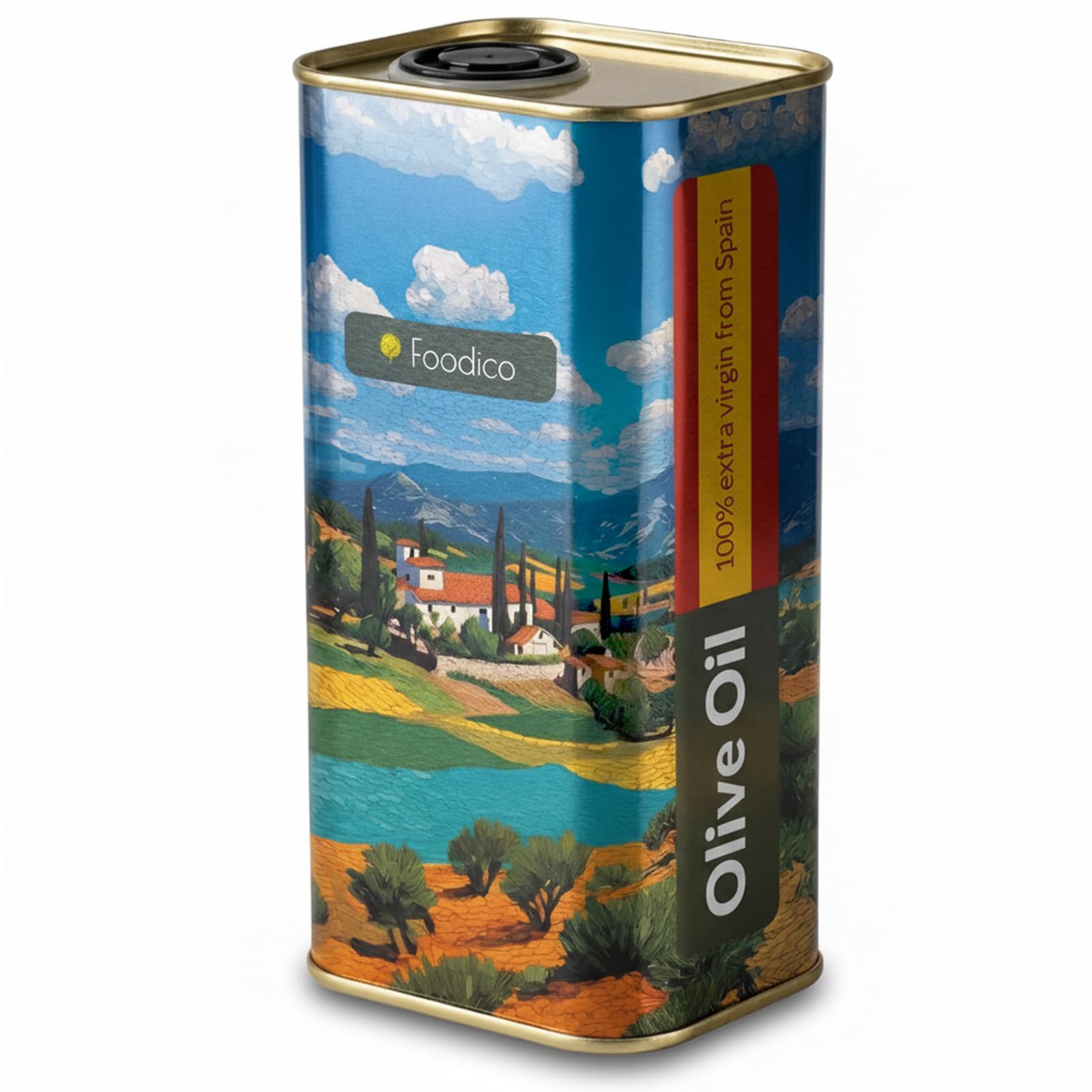 Foodico Foodico Extra Virgin Spanish Olive Oil 1L - First Cold Pressed 100% Pure Superior Quality Spain Origin Mediterranean Cuis
