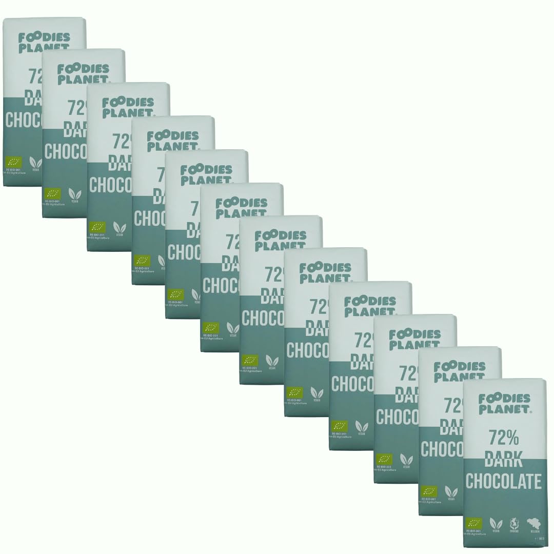 FOODIES-PLANET® 72 % de chocolat belge pur - Végétalien - Bio - 12 x 100 g