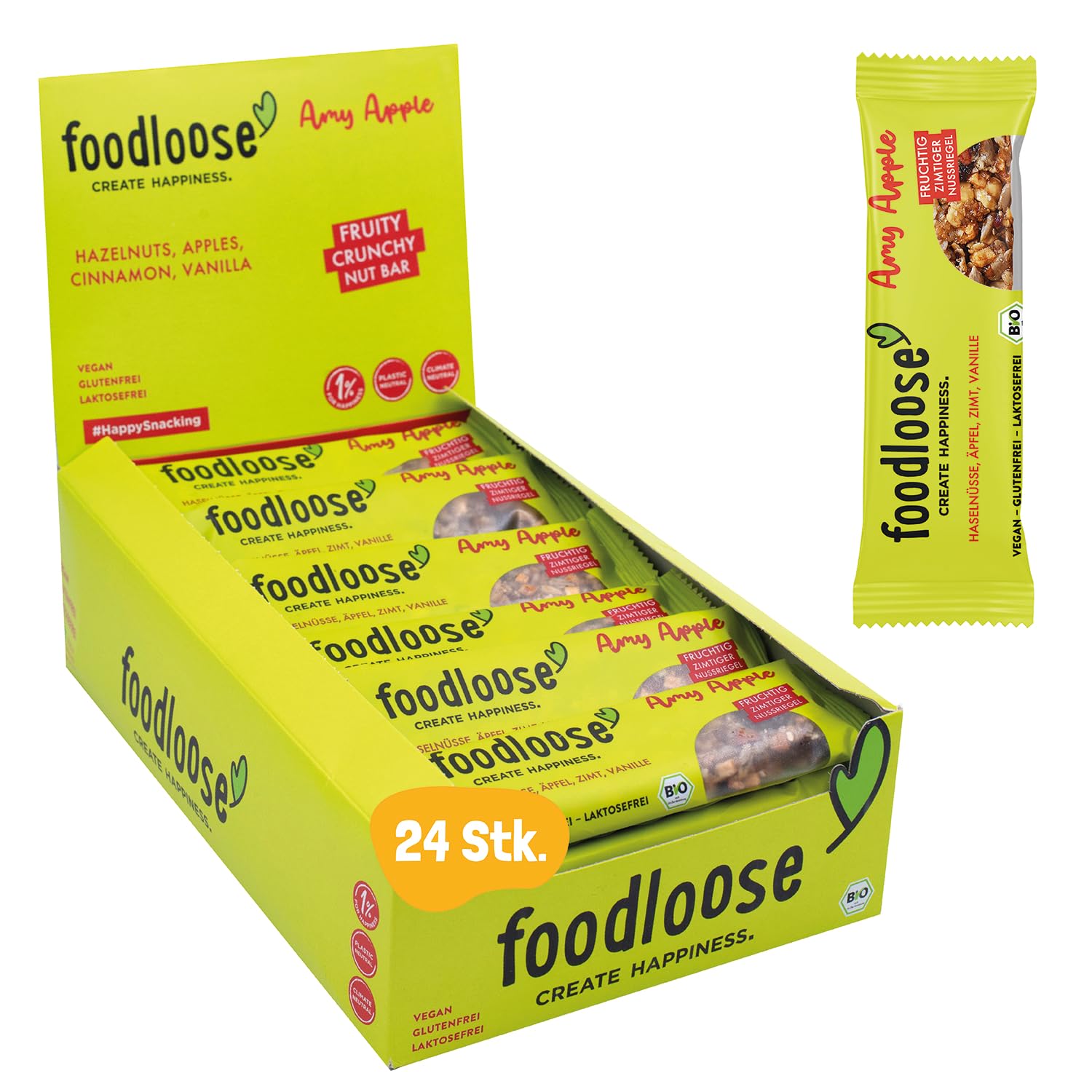 foodloose Bio-Nussriegel Amy Apple Vegane, laktose- und glutenfreie Bio-Riegel ohne raffinierten Zucker Haselnüsse, Äpfel, Zimt Vanille Vorteilspack (24 Riegel x 35g) Amy Apple 1 stück (24er Pack)