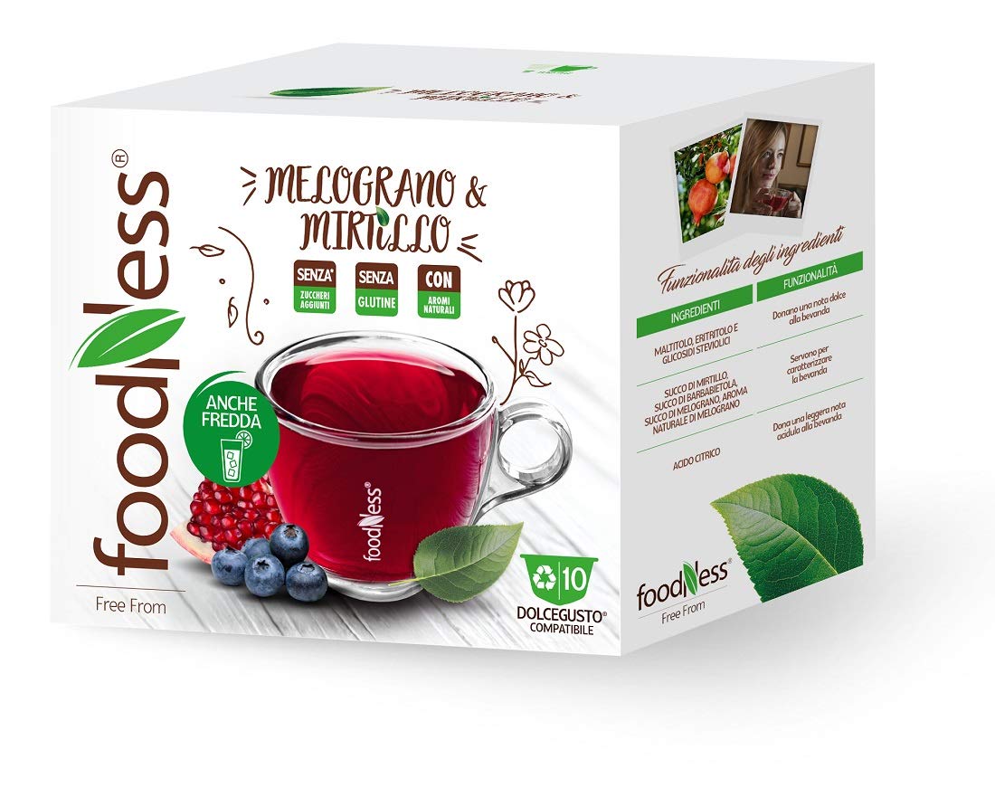 Foodness FoodNess - 50 Capsules + 10 Gifts Tisana Mirtillo and Melograno Compatible with Dolce Gusto Gluten Free Drink with Aspro and Acid Taste