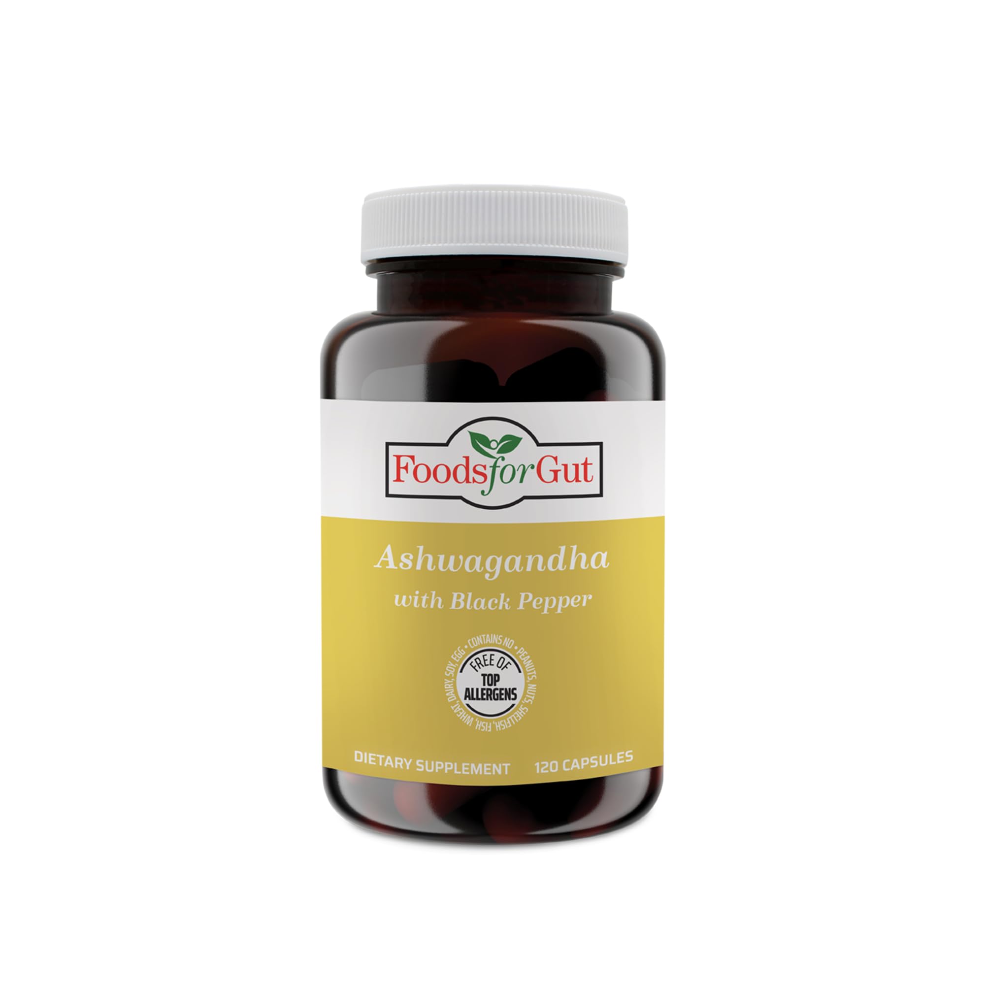 Foods For Gut Ashwagandha 1300 mg Per Serving 120 Capsules Organic Free of Top Allergens Immune Support Stress Relief Energy mood Support.