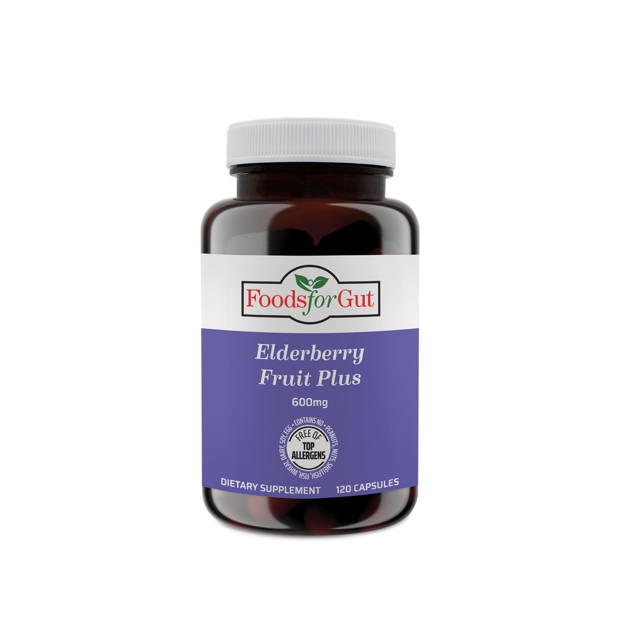 Foods For Gut Elderberry Fruit Plus | 600 mg Per Serving 120 Capsules | Vegetarian Capsules | Free of Top Allergens | Immune Support & Antioxidants | Skin & Digestive Health