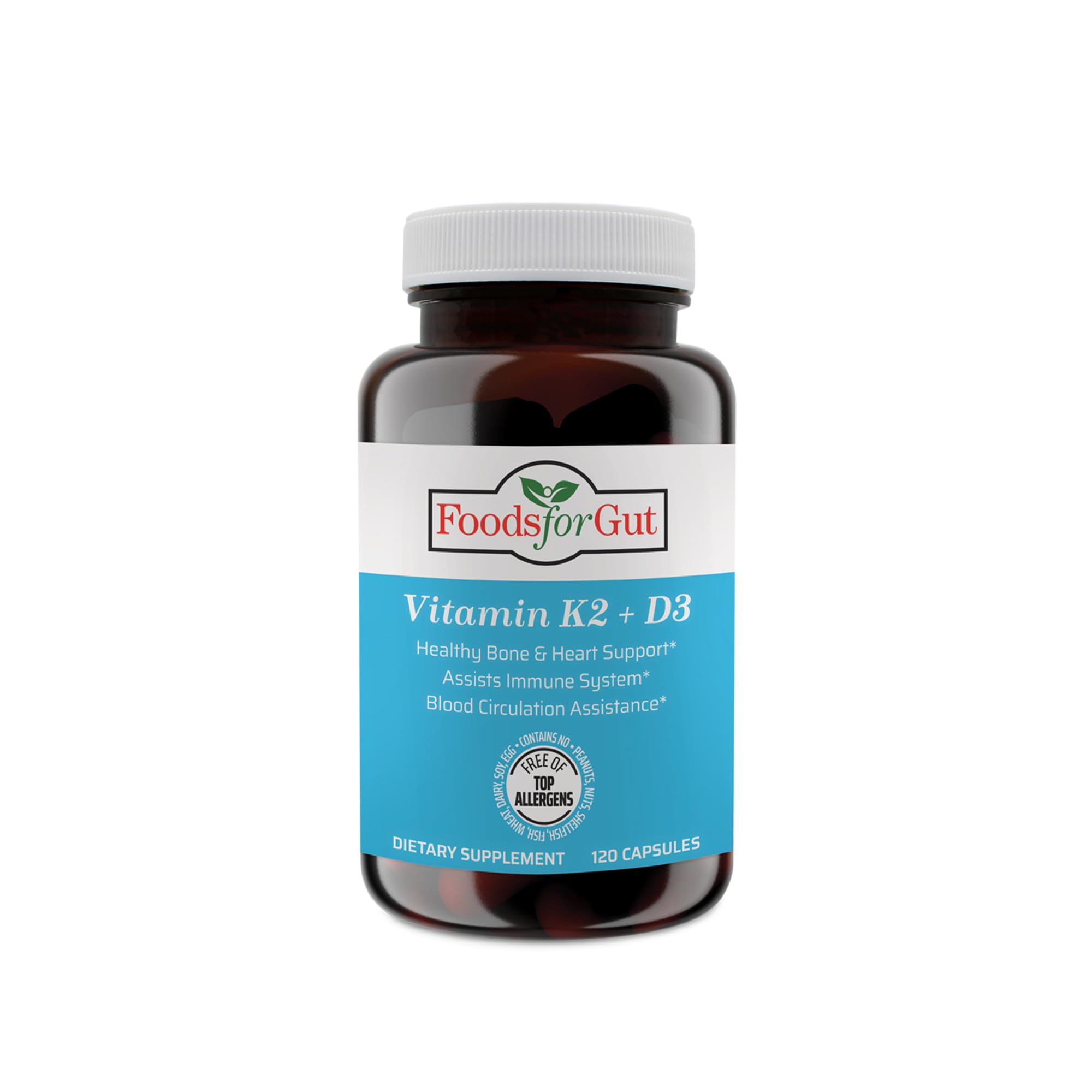 Foods For Gut Vitamin K2 (MK7) D3 & BioPerine Black Pepper Extract | 120 Capsules | Free of Top Allergens | Bone Health | Mood & Energy Support |