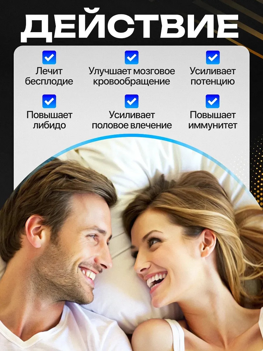 A unique, next-generation product based on a complex of highly active natural ingredients that help restore potency, enhance erections, boost testosterone and libido, improve endurance, and enhance sexual sensations. Its effectiveness is due to its unique composition, which combines herbal extracts, amino acids, trace elements, and castoreum concentrate. The synergistic action of this biocomplex promotes testosterone production and normalizes metabolic processes, increases productivity and concentration, improves brain function, enhances natural sexual desire, and tones male potency. The "Extra Strength for Men" biocomplex, thanks to its natural plant and animal ingredients, improves blood circulation and increases blood flow to the genitals, improves nutrition of the pelvic organs, and promotes a firm and strong erection. The product's effective and safe active ingredients are designed to maintain a stable erection by influencing the natural mechanisms that occur in the body during sexual arousal. The active components of Extra Strength for Men not only address the problem as a whole, but are also effective against many sexual dysfunctions and neurotic sexual dysfunctions, contributing to: — increasing male potency and sexual endurance; — overcoming sexual weakness; — enjoying the fullness and intensity of sexual relations; — increasing libido; — maintaining excellent physical and mental condition. Indications for use: deterioration of erectile quality and decreased sexual desire and vitality. It is not a medicine. Does not contain hormones, is not addictive. The Extra Strength for Men complex effectively and specifically addresses the cause of the disease. It is recommended for use to replenish the deficiency of mineral components and vitamins that develops against the background of the following conditions: — impotence - has a very strong restorative effect; — premature ejaculation; — infertility; — sexual infantilism; — prostate adenoma; — acute and chronic prostatitis; — hormonal disorders (weakened sexual function, erectile dysfunction, decreased libido); — problems with urination (urinary retention, etc.); — weakened immunity. Contraindications: individual intolerance to the components. Shelf life: 24 months from the date of manufacture. Storage conditions: store in a dry, dark place at a temperature not exceeding 25 ° C, air humidity not exceeding 75%. Nutritional value per 100 g of product: carbohydrates - 68.4 g, fats - 0 g, proteins - 5.6 g. Energy value per 100 g of product: 296.1 kcal / 1239.8 kJ. A wonderful New Year's gift for yourself and your loved ones!