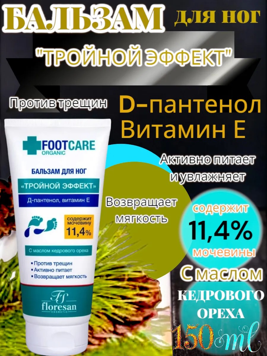 Бальзам для ног - эффективное средство для поддержания красоты и здоровья Ваших ног. Идеален для ухода за сухой, растрескавшейся и огрубевшей кожей стоп. Высокое содержание мочевины (11,4 %) способствует разрыхлению огрубевшей кожи и бережному удалению омертвевших клеток, не затрагивая здоровую кожу. Активный растительный комплекс с натуральными экстрактами и витаминами предотвращает образование микротрещин, питает, увлажняет и возвращает коже стоп мягкость и эластичность. 1 туба объем 150 мл