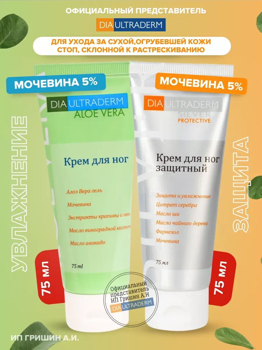 NO NAME Крем для ног Сильвер 75 мл и Алое 75 мл Диаультрадерм