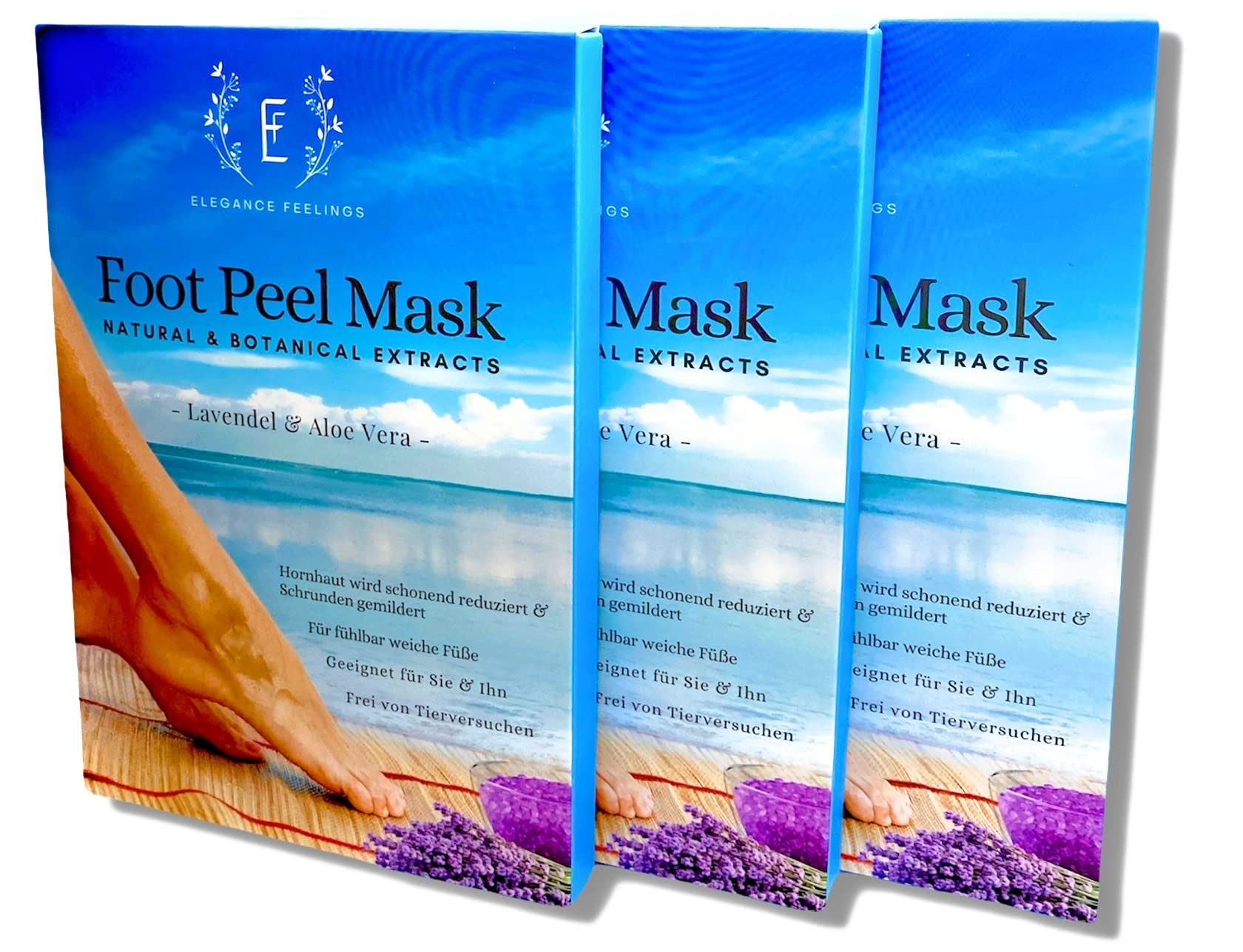 Are your feet suitable for summer? Our foot scrub mask from Elegance Feelings helps you get rid of unsightly calluses and cracks. Thanks to the application, your feet are soft and callus is gently reduced. Because our foot mask contains a natural combination of active ingredients from selected ingredients, which has a peeling and nourishing effect. This means that annoying rasping and grinding is no longer necessary. In addition, aloe vera provides your feet with sufficient moisture, while the lavender oil soothes your skin and stimulates cell renewal. So treat yourself to relaxed foot care without much effort and let yourself be convinced of the result. No animal testing: we attach great importance to the fact that no animal testing is carried out during the development of our foot masks.