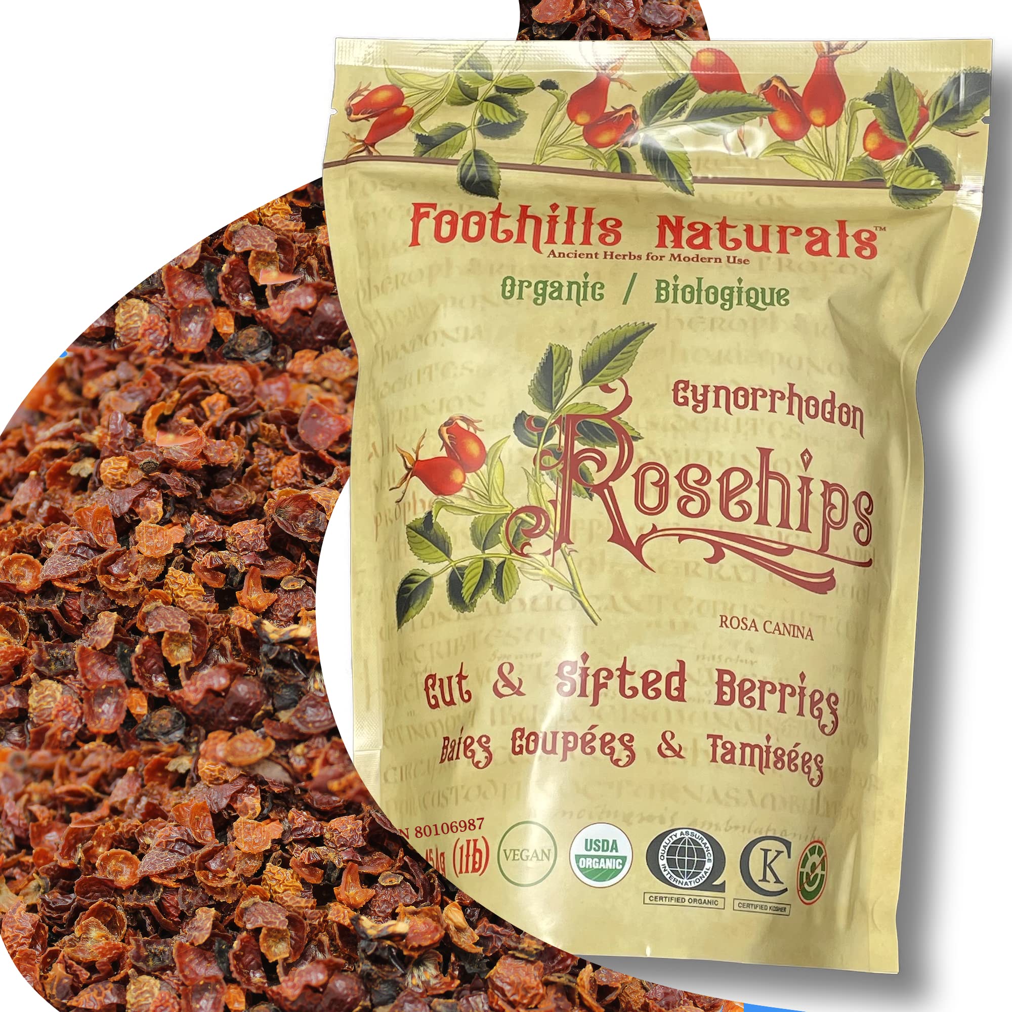 Foothills Naturals Rosehips Organic Cut Seedless - 1 Pound (454 Grams) Premium Quality