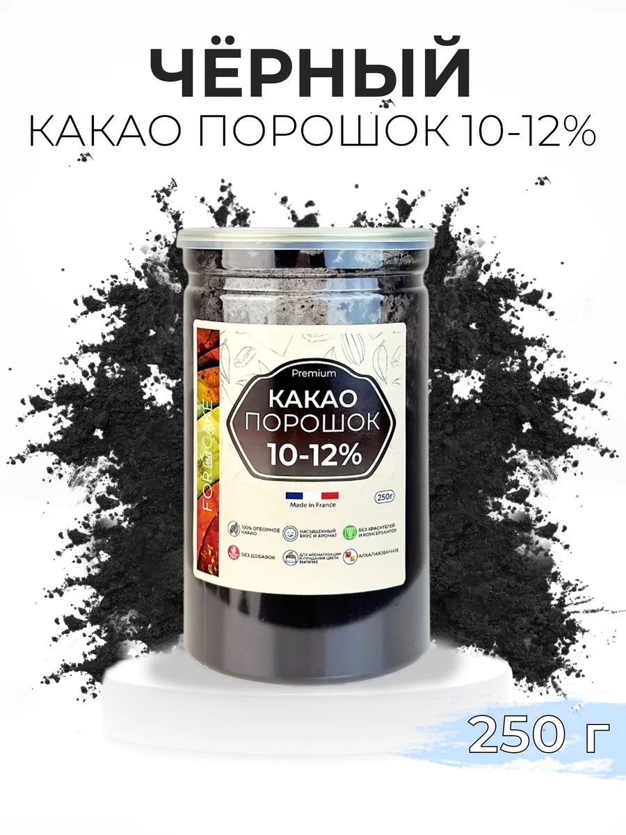 Black confectionery cocoa powder 10-12% 250g is an excellent choice for those who strive to create exquisite culinary masterpieces. This alkalized cocoa powder is distinguished by its deep black color and delicate smoky nuance, which adds a special sophistication to your dishes. Thanks to the alkalization process, in which cocoa mass is treated with alkali, the powder acquires a slightly alkaline reaction. This reduces the tannin content and improves the flavor, aroma, and color of the product. This product is ideal for creating a variety of baked goods: from dark chocolate sponge cakes to delicate meringues. It can be used in the preparation of ice cream, glazes, creams, and truffles. It also makes an excellent base for hot drinks or a topping for desserts. Alkaline cocoa powder not only enhances the taste of your dishes but also makes them more attractive thanks to its rich color. Use it in confectionery for professional results in your kitchen. This product is an indispensable ingredient for both home cooks and professional confectioners. Cocoa powder adds depth of flavor to any chocolate product or drink thanks to its unique texture and aroma. If you want to create something special—be it baked goods or drinks—this cocoa powder will be your reliable companion on the path to taste perfection.