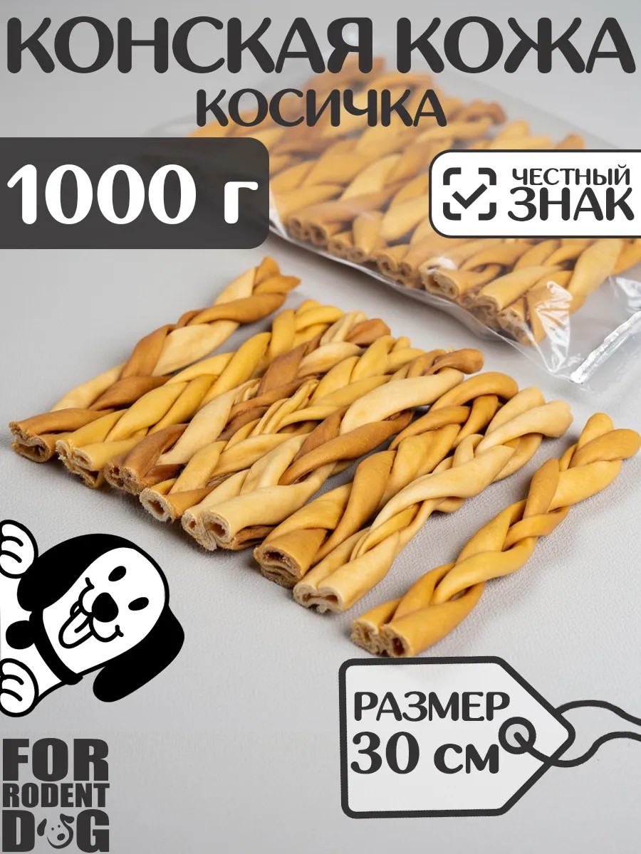 FOR RODENT DOG Лакомства для собак, конская кожа (косичка), 30 см 1000 г