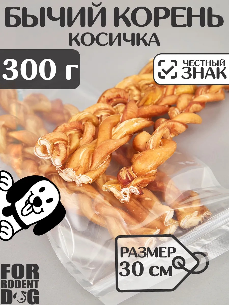 FOR RODENT DOG Лакомства для собак, корень бычий (косичка), 30 см 300 г