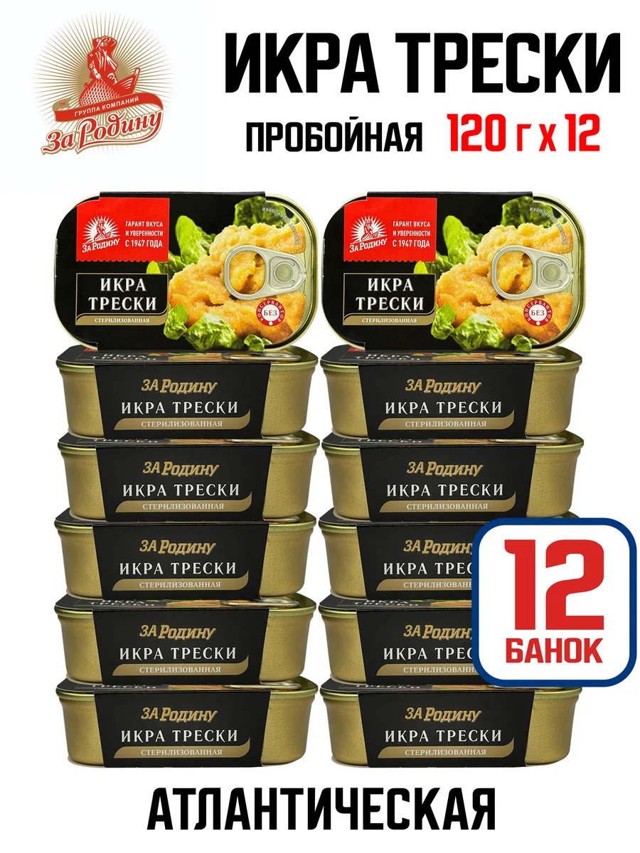 ЗА РОДИНУ Икра трески атлантической натуральная, 120 г - 12 шт