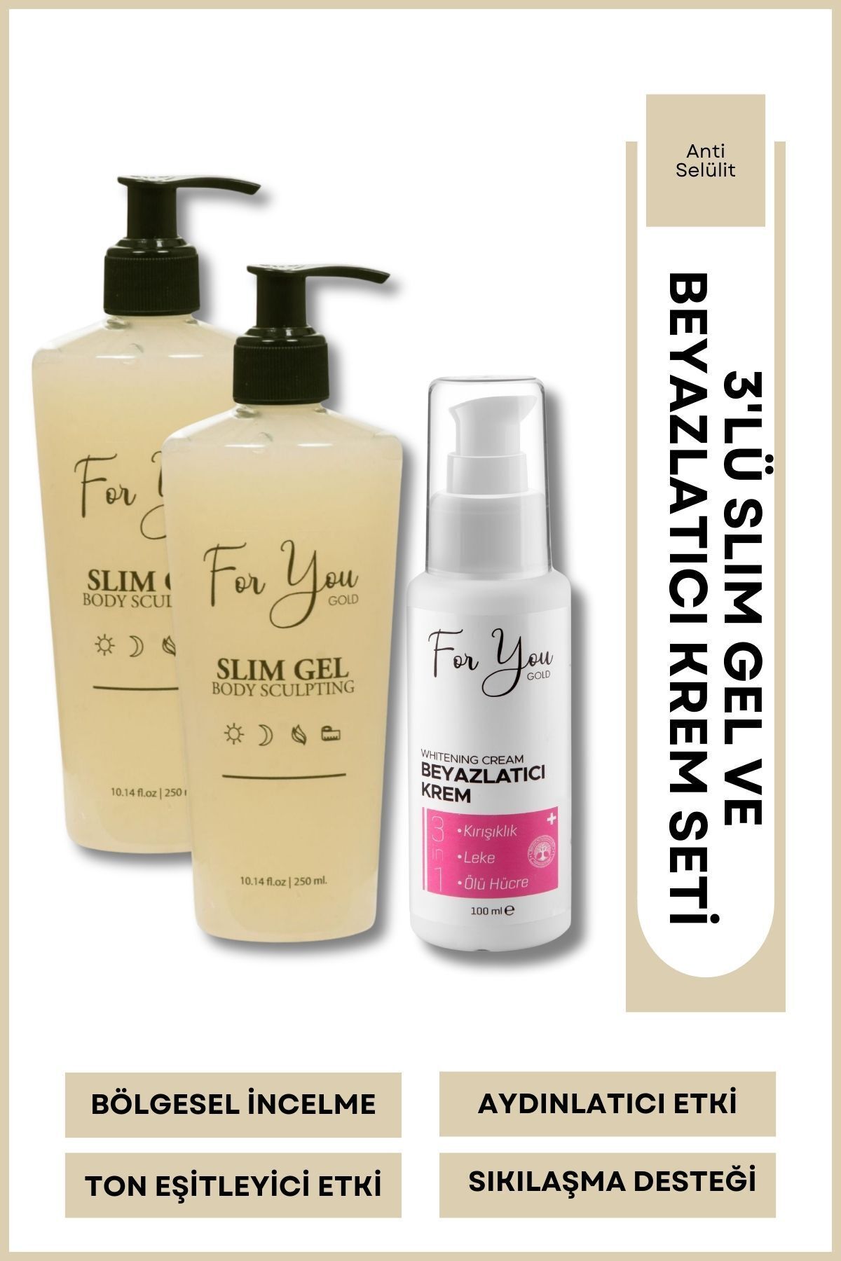 • FOR YOU SLIM GELprovides regional tightening and slimming as a result of regular use. Supports fat burning. Fights against cellulite. Also provides smoothness. It is effective for stretch marks that occur during pregnancy and stretch marks that occur during the weight gain and loss process. Provides tightening of the body.