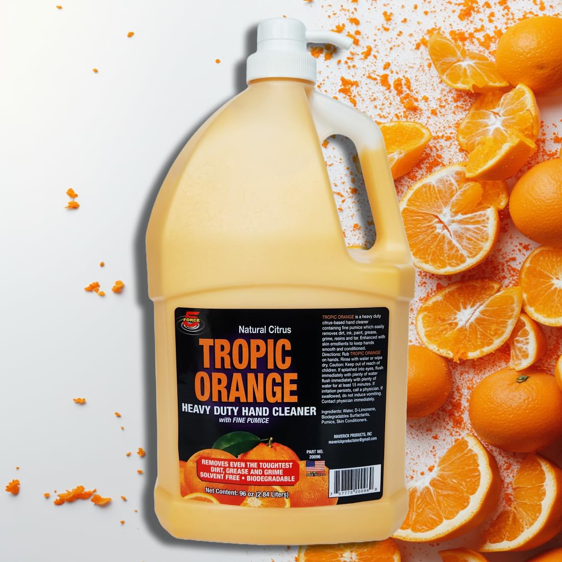 Force 5 -New 96oz- Tropic Orange. Heavy Duty Hand Soap for Mechanics. Natural Citrus Scent, Hand Cleaner For Mechanics with Pumice, Natural Citrus Scent, Cleaner For Mechanics.