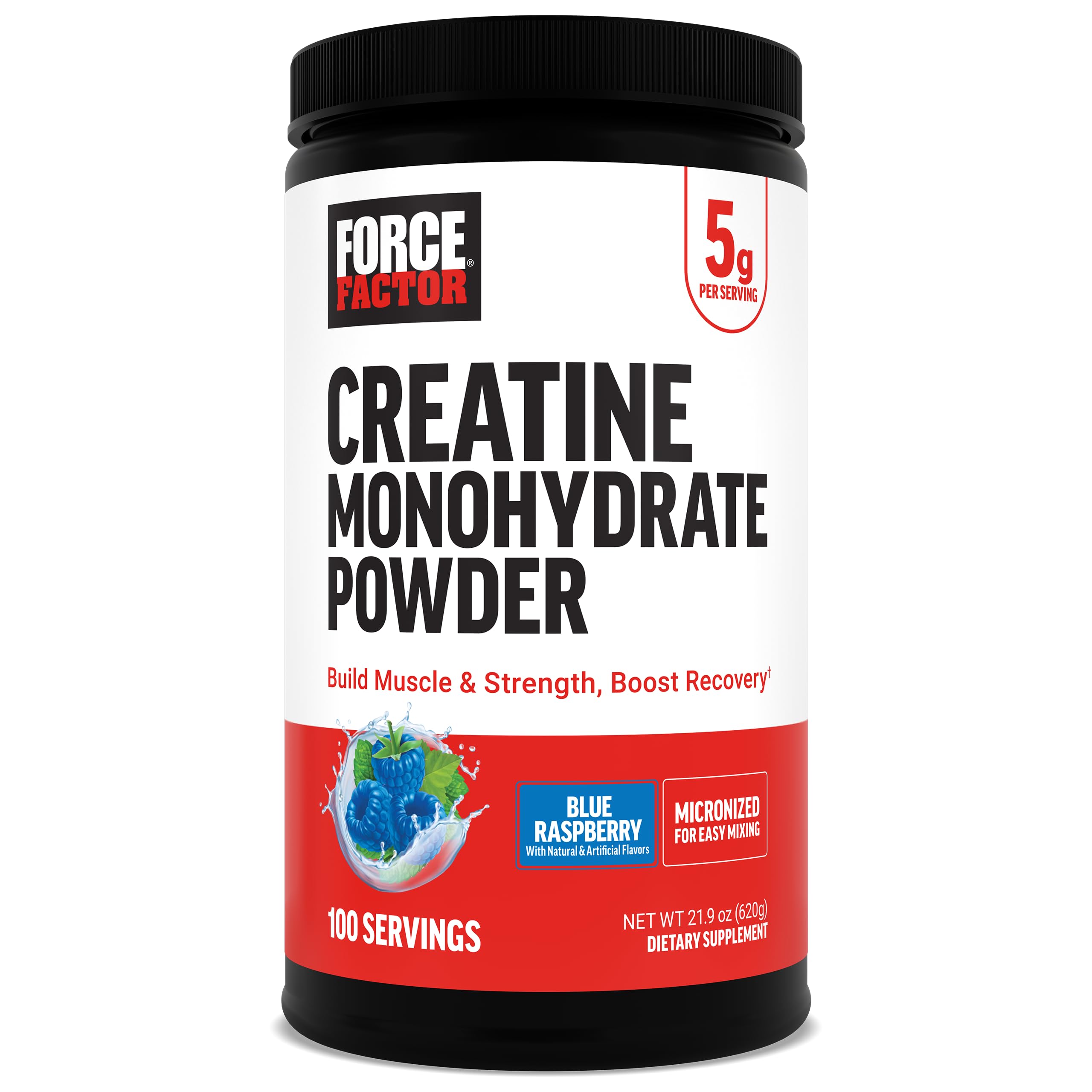 Force Factor Creatine Monohydrate Powder 5g Micronized Dose to Support Muscle Growth Strength Recovery Cognitive Health & Working Memory Blue Raspberry 100 Servings