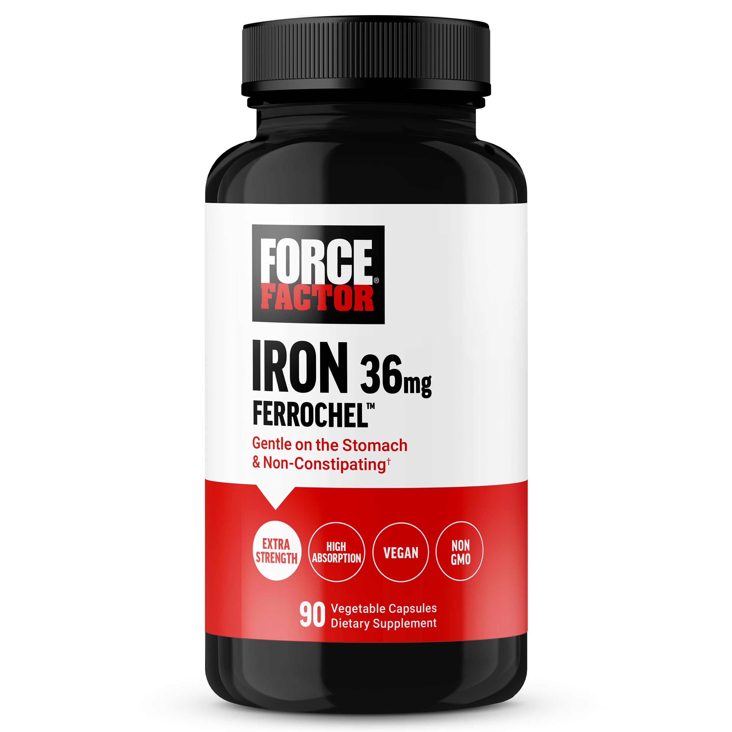 MADE IN THE USA: Force Factor Iron with Ferrochel is made in America in GMP-certified manufacturing facilities to ensure quality and safety. All of our ingredients go through rigorous testing to validate their potency and purity. PREMIUM QUALITY VEGAN FRIENDLY: With no artificial colors, artificial flavors, or gelatin, you can rest assured that you're choosing a high-quality, better-for-you iron supplement for women and men. GENTLE ON THE STOMACH NON-CONSTIPATING: Some iron tablets or iron supplement liquids can be hard on the stomach. Force Factor Iron with Ferrochel provides effective iron supplementation without causing stomach discomfort or constipation. CONTAINS FERROCHEL CHELATED IRON FOR ENHANCED ABSORPTION: Ferrochel is a fully chelated iron, so it does not block the absorption of other nutrients. Its small molecular size allows it to remain intact during digestion for optimal absorption. EXTRA STRENGTH IRON SUPPLEMENT: Force Factor Iron supplement is formulated to replenish iron stores and fight fatigue. Every potent dose supports energy, healthy red blood cells, and more.