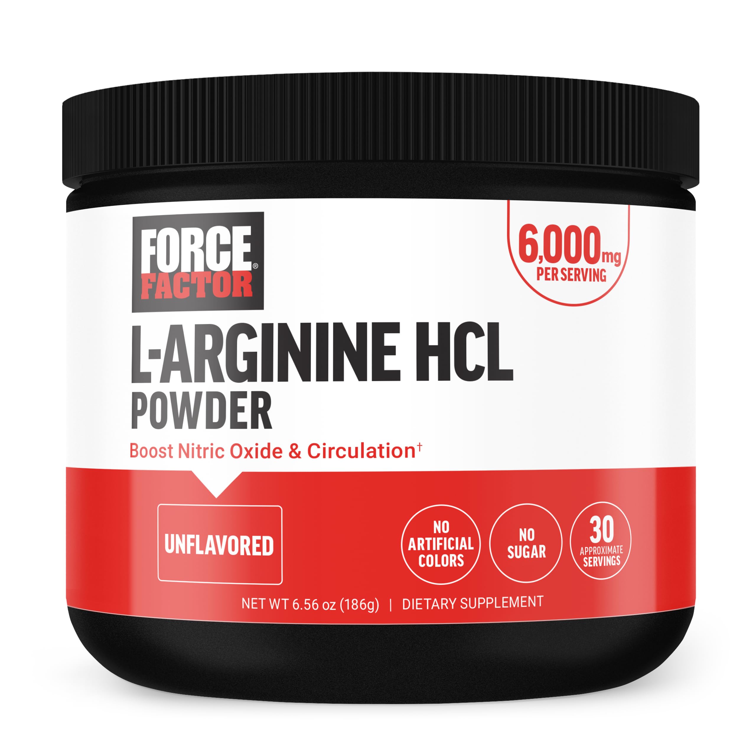 FORCE FACTOR L Arginine HCL, L-Arginine Supplement to Boost Nitric Oxide for Better Circulation, Blood Flow, and Muscle Pumps, L Arginine Powder 6000mg, Unflavored, 30 Servings
