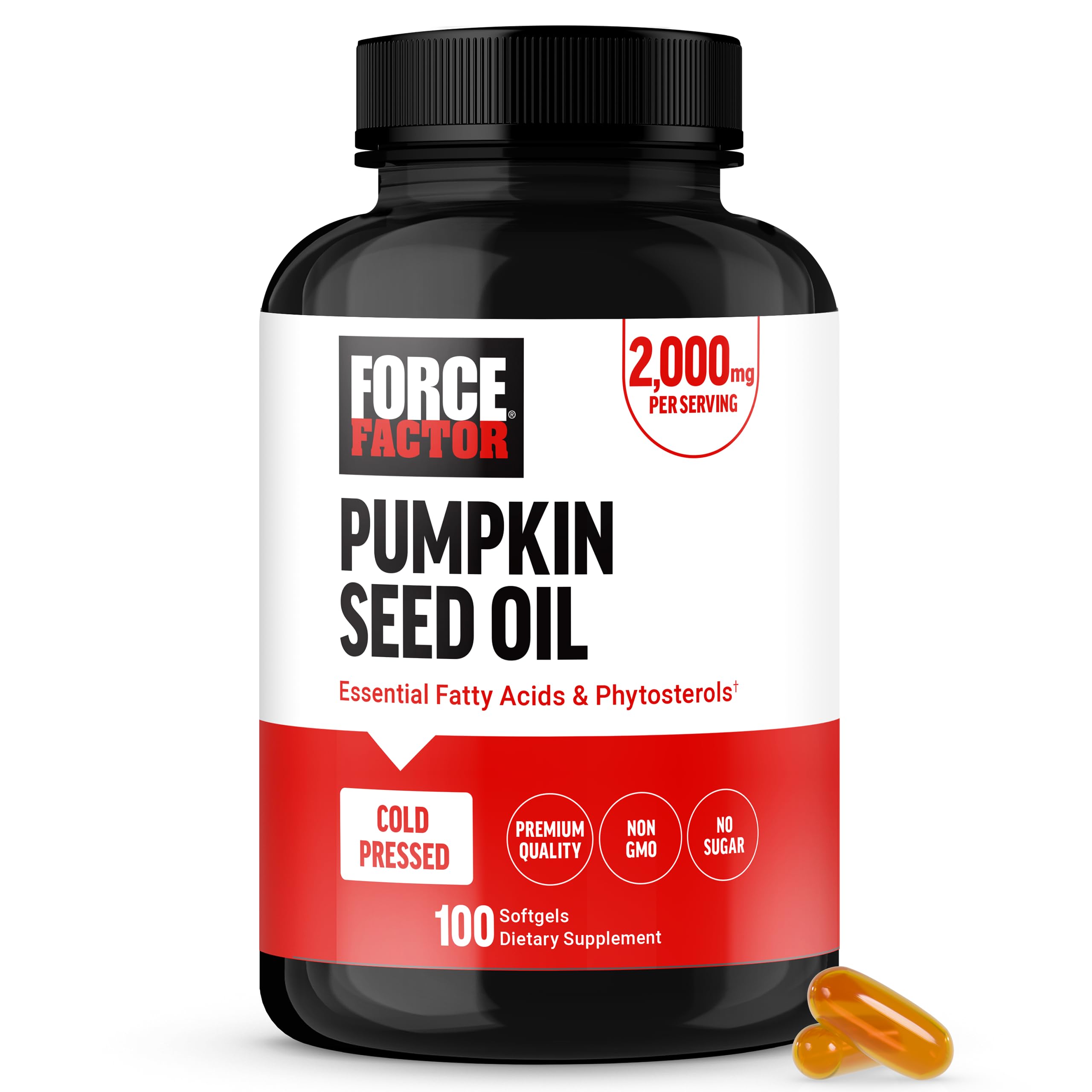 MADE IN THE USA: Force Factor Pumpkin Seed Oil is made in America in GMP-certified manufacturing facilities to ensure quality and safety. All of our ingredients go through rigorous testing to validate their potency and purity. PREMIUM QUALITY: With no artificial colors, artificial flavors, or gelatin, you can rest assured that you're choosing a high-quality, better-for-you phytosterols supplement for your health and wellbeing. COLD-PRESSED FOR PURITY: Our cold-pressed process guarantees a superior quality oil, free from heat-induced damage, keeping every nutrient intact. Add Pumpkin Seed Oil to your cart now!. BOOST OVERALL WELLBEING: Every dose of our pumpkin seed oil phytosterols supplement delivers a potent dose of essential fatty acids to heart health and cognitive function. PROSTATE HEALTH SUPPORT: Experience unparalleled prostate support with Force Factor's Pumpkin Seed Oil, rich in phytosterols for optimal prostate function.