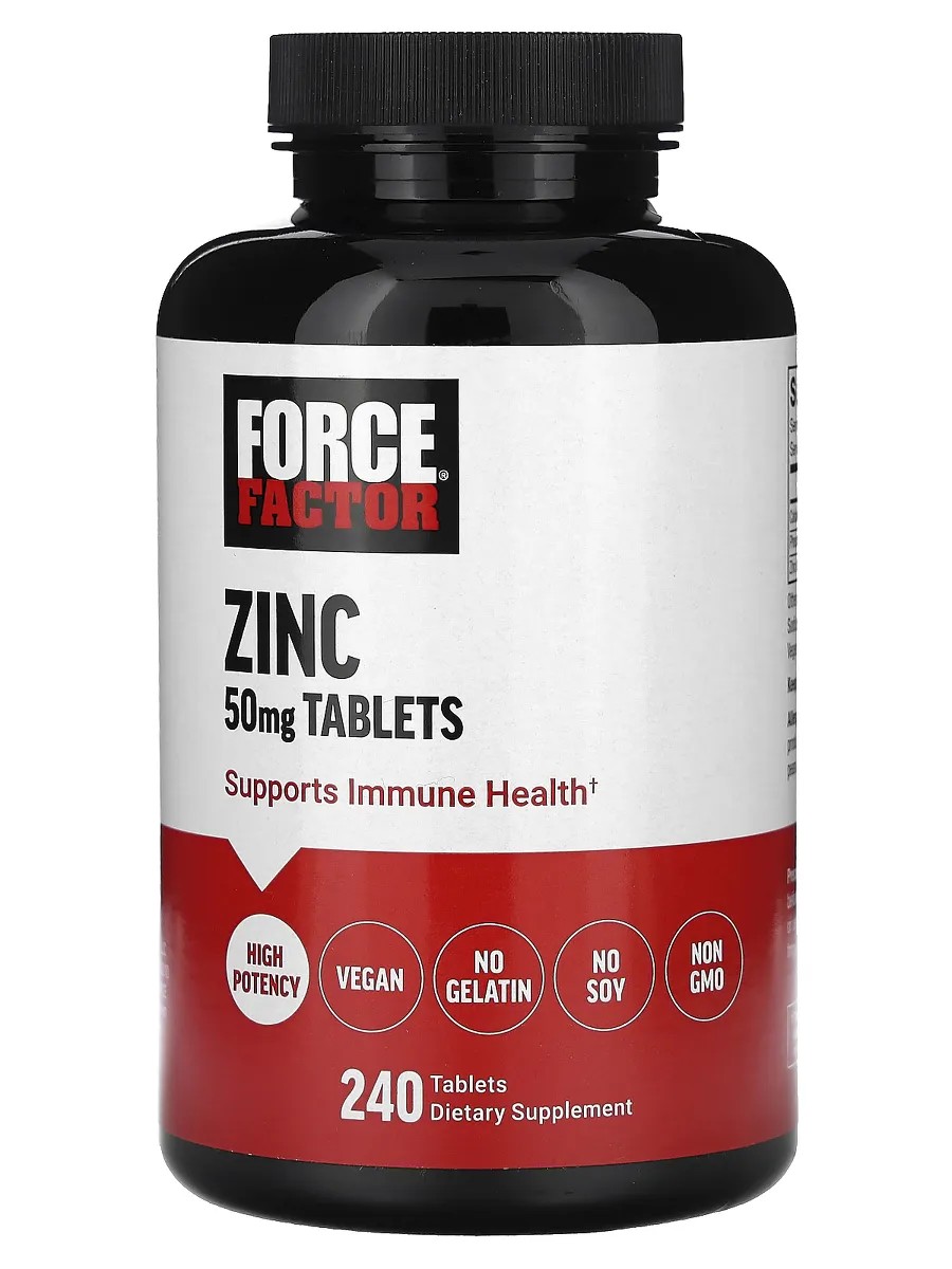 Force Factor Zinc 50 mg is a highly effective zinc supplement in an easily absorbed form, designed to comprehensively support immunity, men's health, and overall well-being.