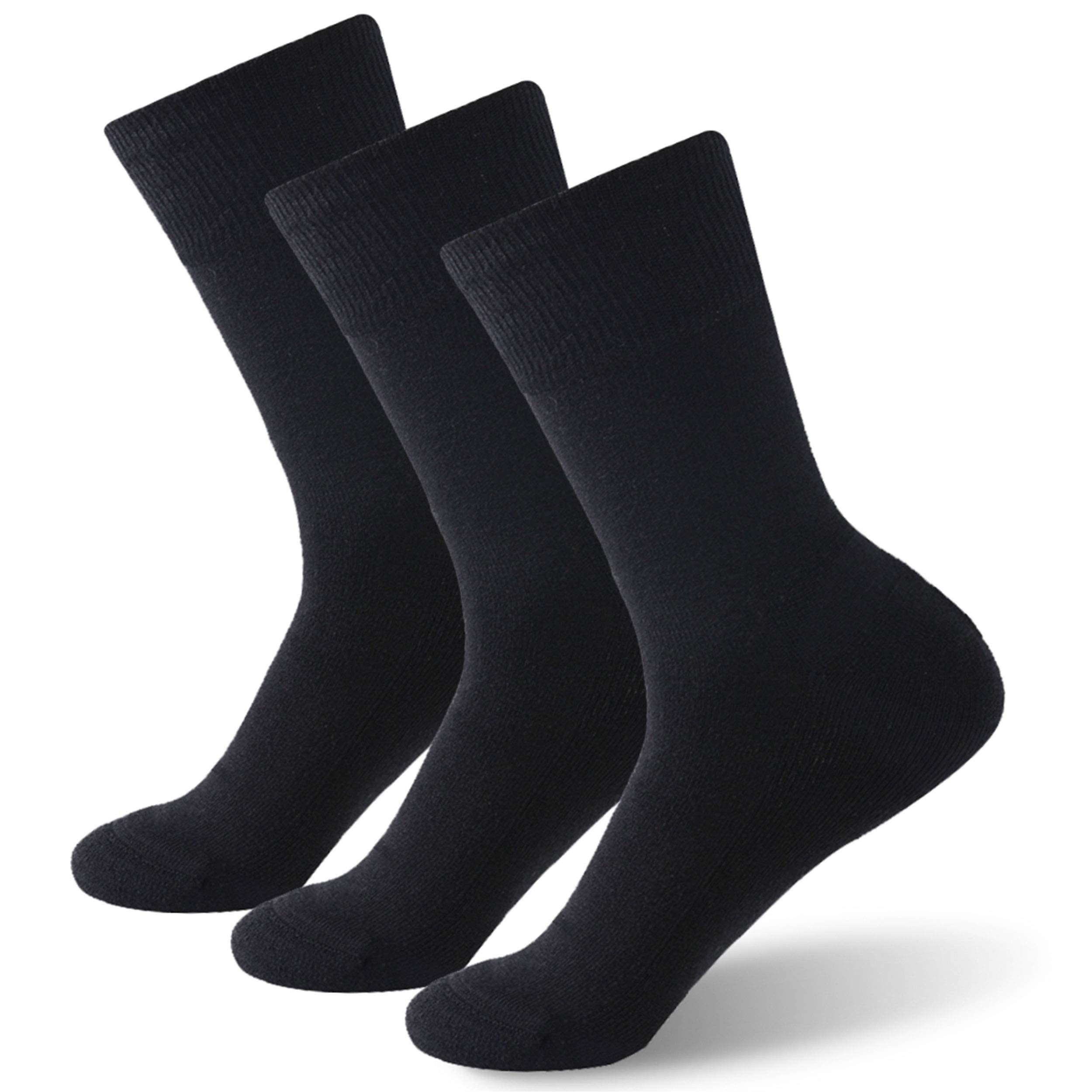 Forcool Merino Wool Non Binding Loose Top Cushioned Sole Dress Crew Diabetic Socks for Men and Women M/L/XL 1/3 Pairs 3 Black XL (US Women 10-13/Men 9-12)