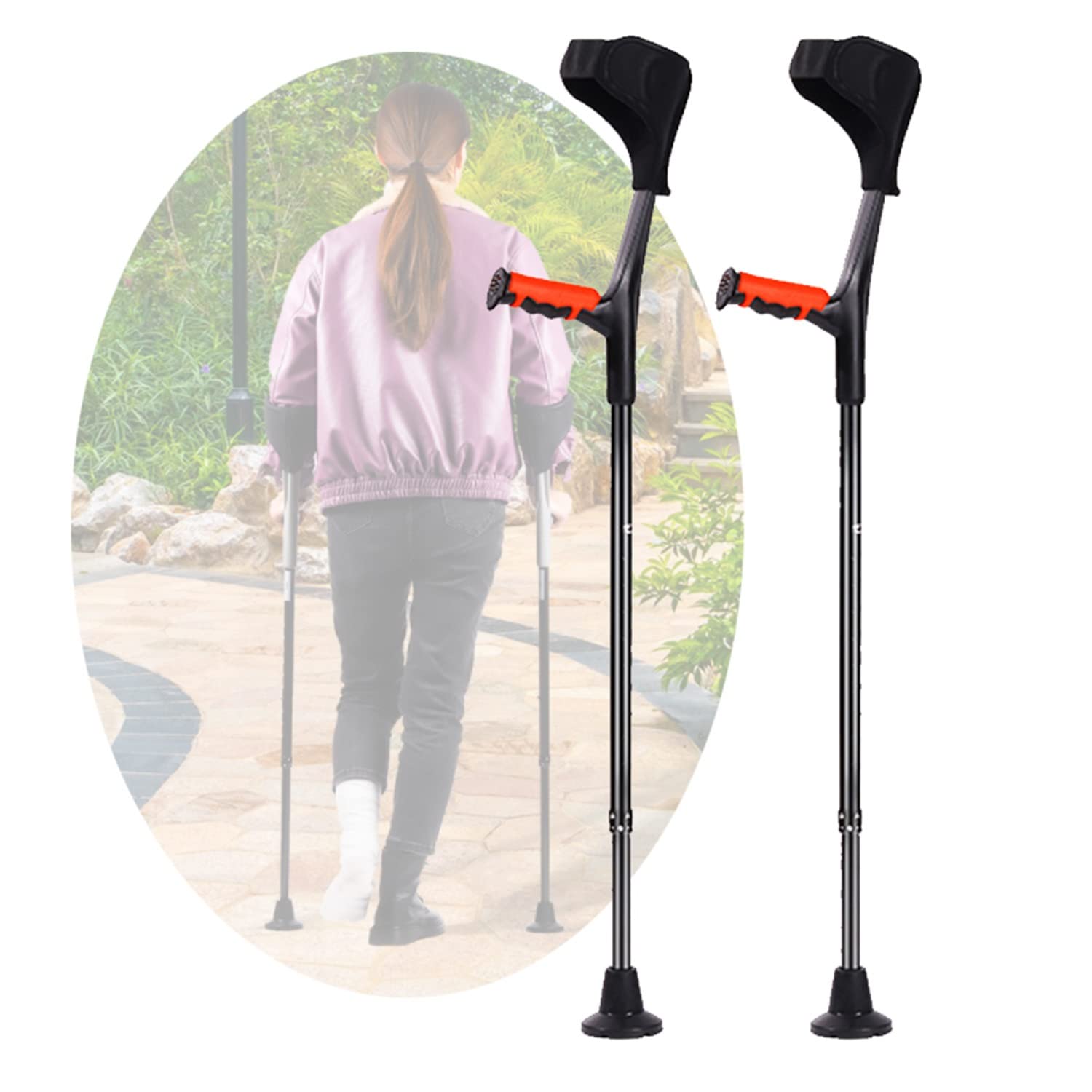 4. Anti-falling safety belt, thoughtful anti-falling design, to prevent crutches from falling while walking, for the sake of your health. 1. Ergonomic and comfortable grip, compressive and non-slip. U-shaped support elbow support can relieve fatigue. 3. Increase thicker rubber non-slip foot pads, which are stronger, more durable, more stable, and travel more assured!. 2. 10 levels of height adjustable (72-93cm), easy to adjust according to the user's height, suitable for people of different body types. 5. Lightweight aluminum alloy material, sturdy and durable, weighs about 558g, and bears up to 150kg.