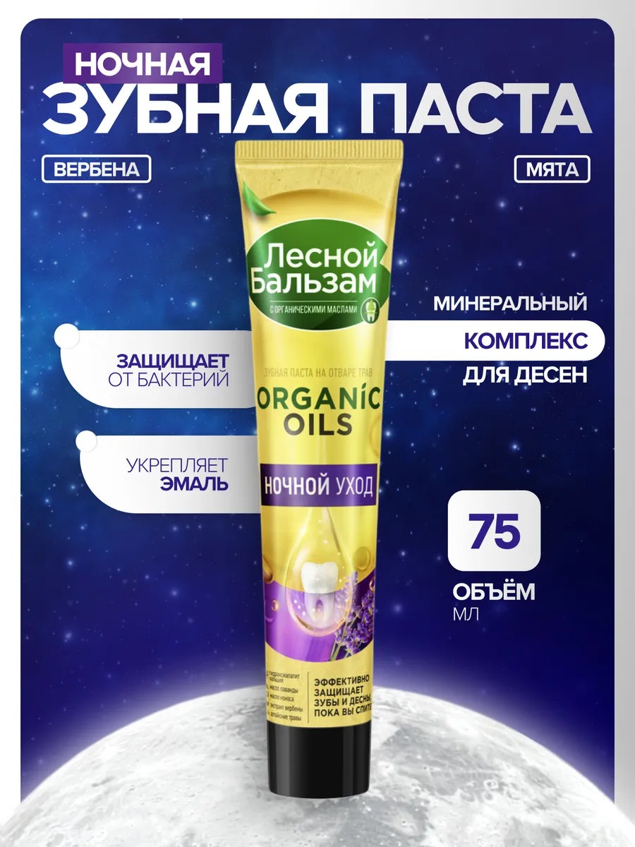 | Комплектация | Лесной бальзам – зубную пасту Ночной Уход с органическими маслами, 75 мл. |